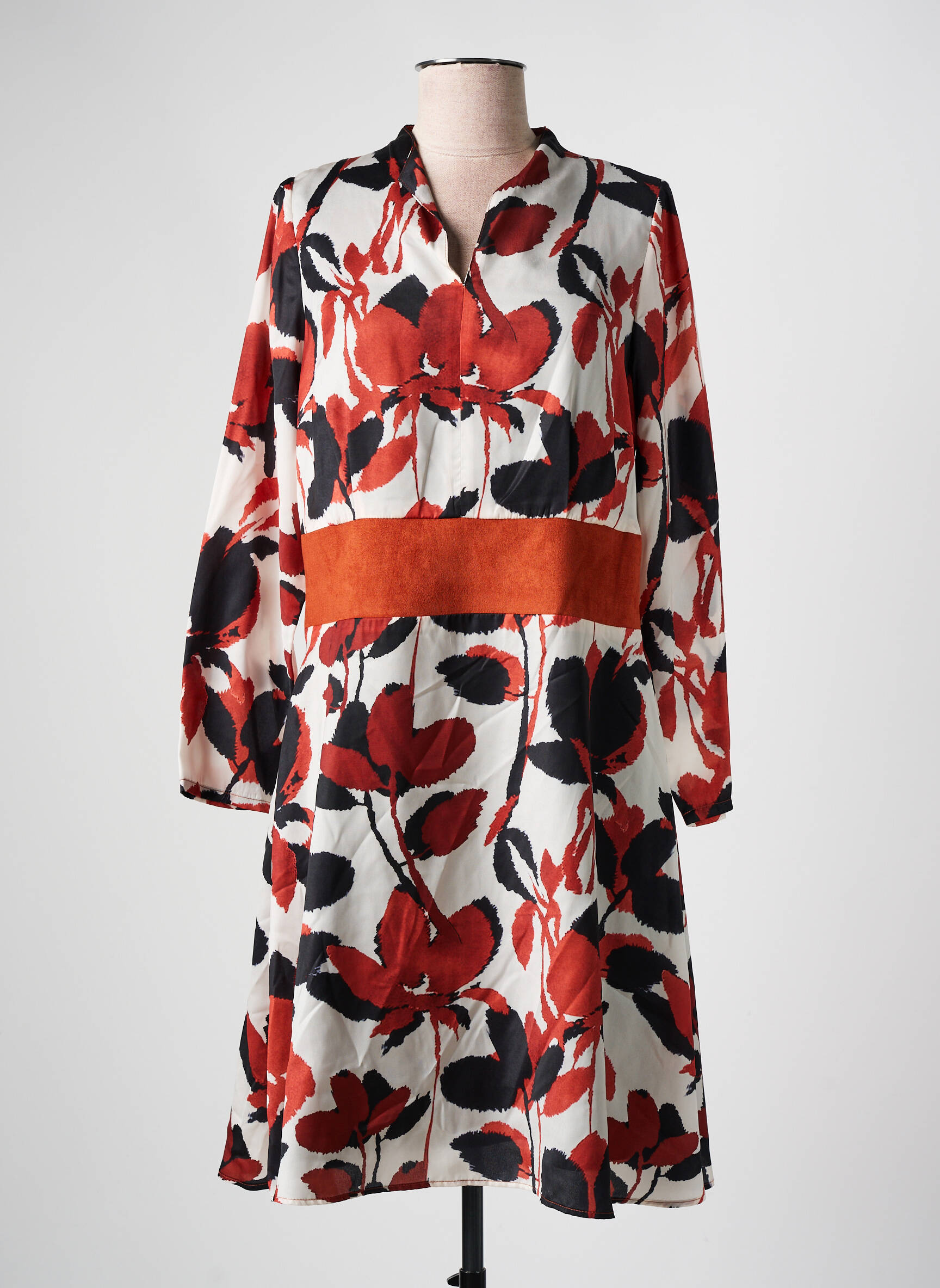 Craquez pour cette robe mi-longue de la marque GREGORY PAT, une vraie bonne affaire pour donner du style à votre garde-robe sans vous ruiner. Son imprimé floral aux tons rouges et noirs apporte une touche de fraîcheur, tandis que la bande contrastée à la taille souligne joliment la silhouette. Avec sa coupe fluide et ses manches longues, elle sera parfaite en toute saison, idéale pour habiller vos journées comme vos soirées à prix mini.