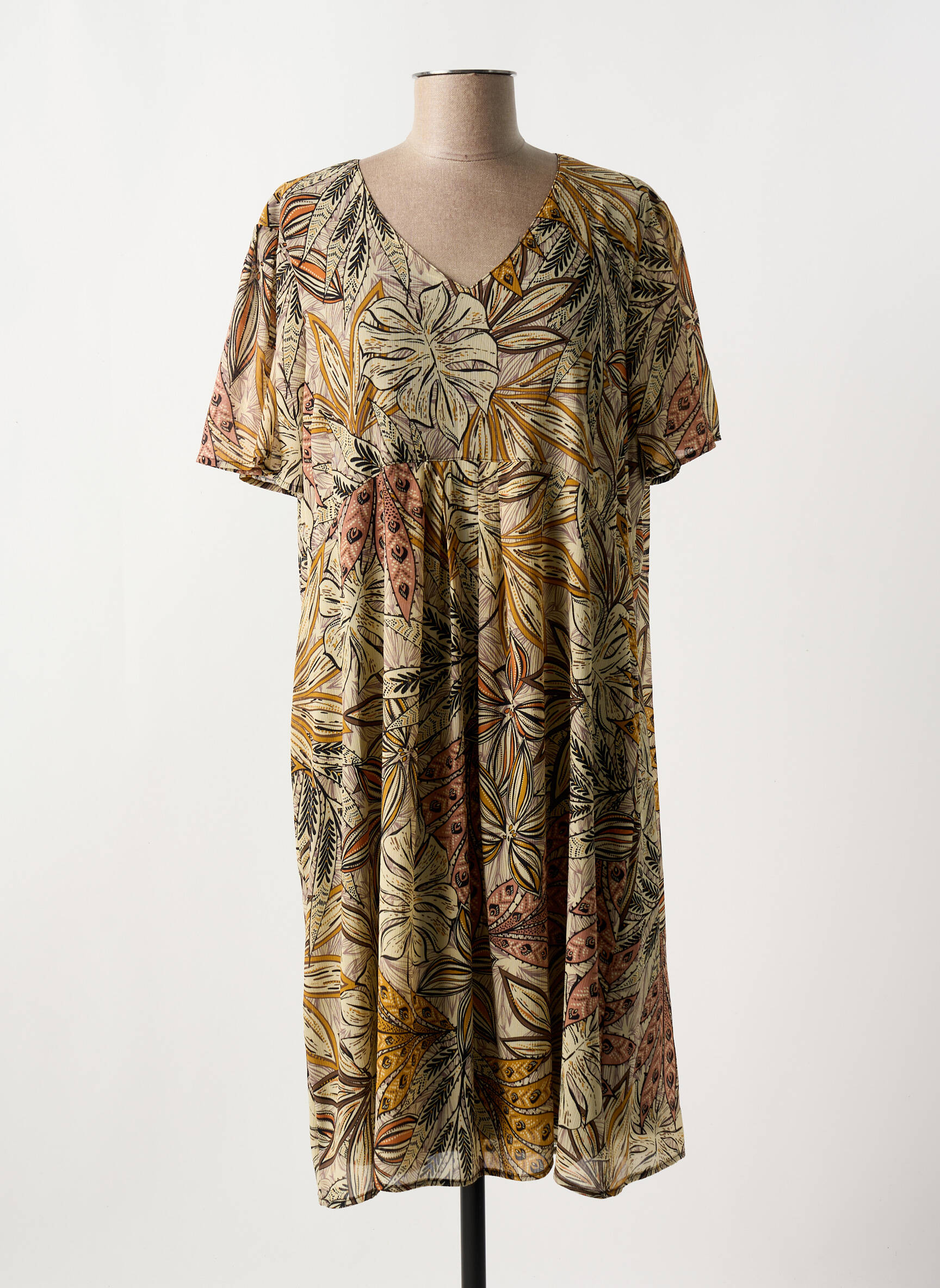 Craquez pour cette robe mi-longue GRIFFON à prix tout doux, parfaite pour apporter une touche de fraîcheur à votre garde-robe sans vous ruiner. Son imprimé floral coloré aux tons dorés, ocre et terracotta sublime une coupe fluide et féminine, idéale pour rester élégante tout en profitant du confort au quotidien. C’est l’occasion de faire des économies tout en craquant pour un look tendance.