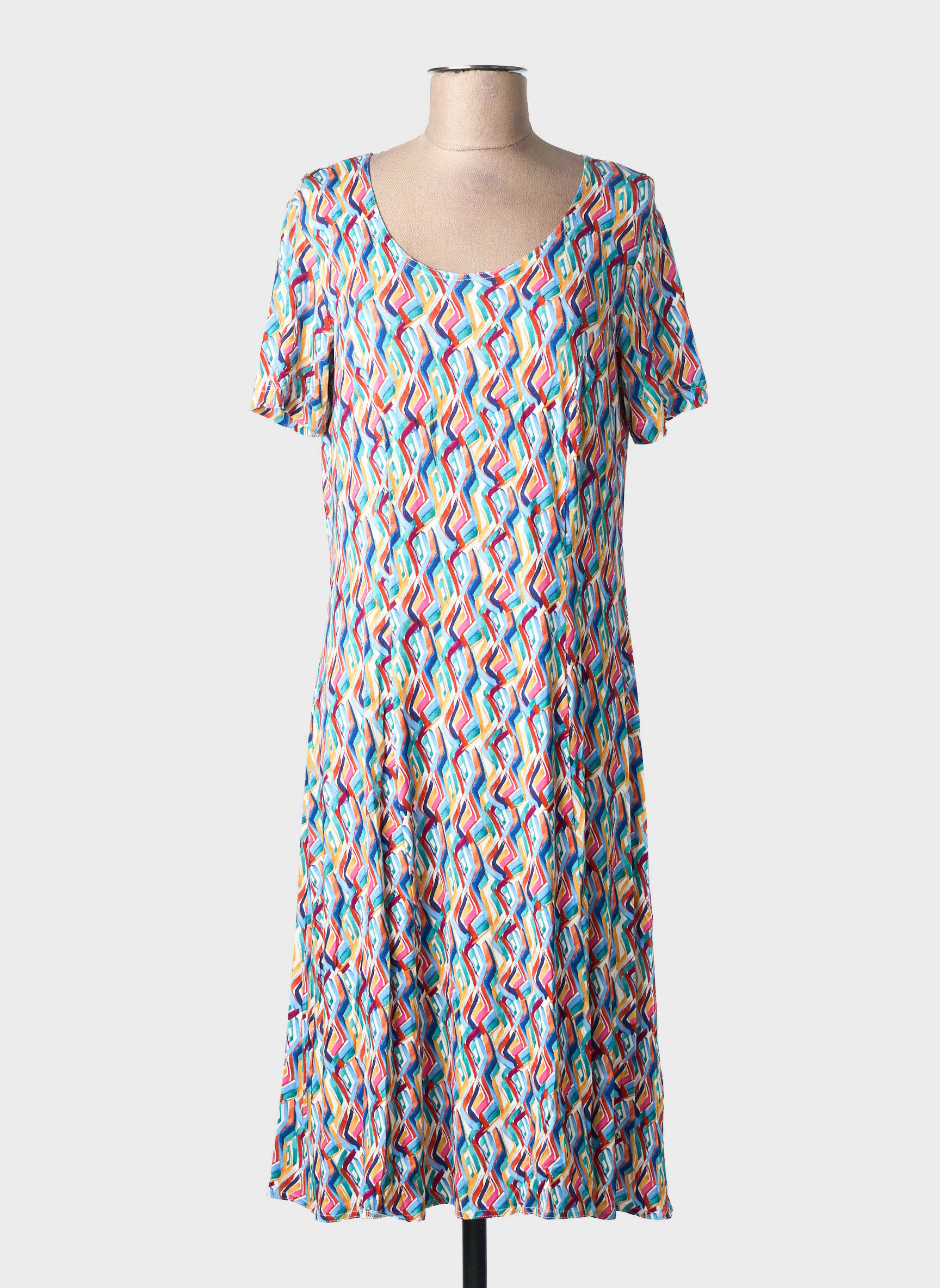 Profitez d'une véritable affaire avec cette robe mi-longue de la marque GRIFFON, idéale pour apporter de la couleur et de la gaieté à votre garde-robe sans vous ruiner. Sa coupe fluide et son imprimé graphique multicolore illuminent instantanément la silhouette, tout en garantissant un confort au quotidien. C’est le choix parfait pour un look original à petit prix, parfait pour les journées ensoleillées ou pour se démarquer avec élégance lors d'une sortie entre amis.