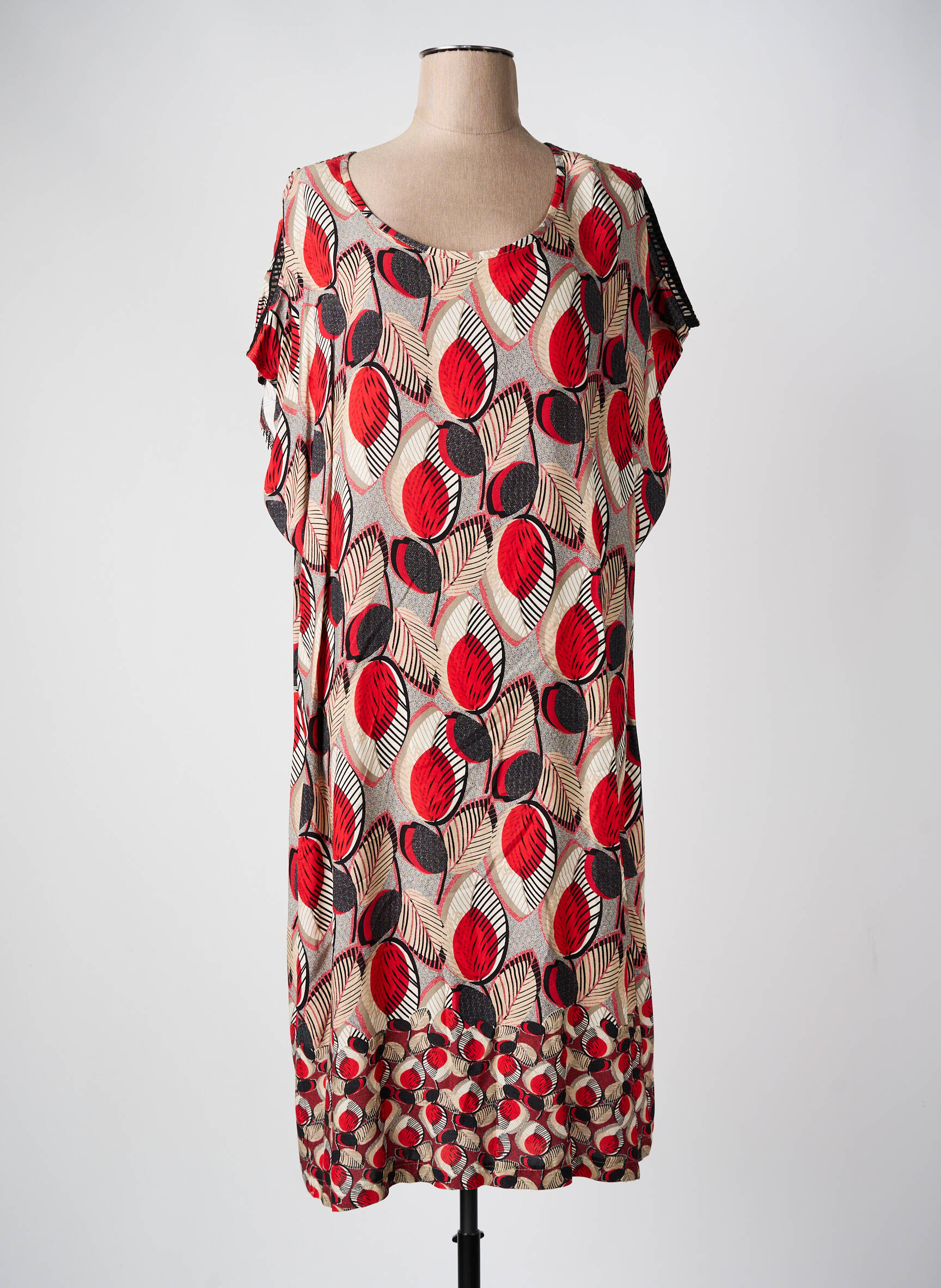 Saisissez l'opportunité de renouveler votre garde-robe à petit prix avec cette robe mi-longue GRIFFON pour femme au style graphique et coloré. Son imprimé audacieux de feuilles rouges et noires sur fond beige apporte une touche moderne et tendance, tandis que sa coupe fluide assure un confort optimal au quotidien. Idéale pour celles qui veulent allier style et économies, cette pièce fait partie des incontournables de la saison à prix réduit.