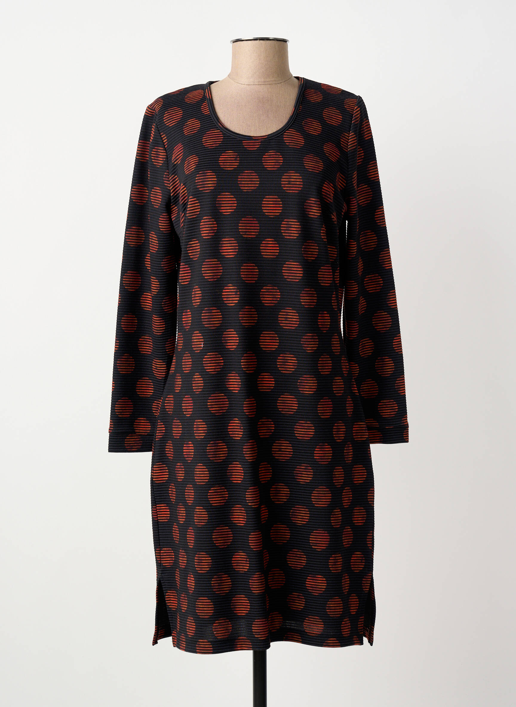 Succombez à l’élégance maligne avec cette robe mi-longue signée GUY DUBOUIS, la pièce idéale pour celles qui veulent affirmer leur style tout en réalisant une belle économie. Son imprimé à pois rouges sur fond noir apporte une touche d’originalité et de modernité, tandis que sa coupe droite et ses manches longues vous garantissent confort et allure au quotidien. C’est le bon plan parfait pour renouveler votre dressing sans vous ruiner, en profitant de la qualité d’une marque reconnue à prix accessible.