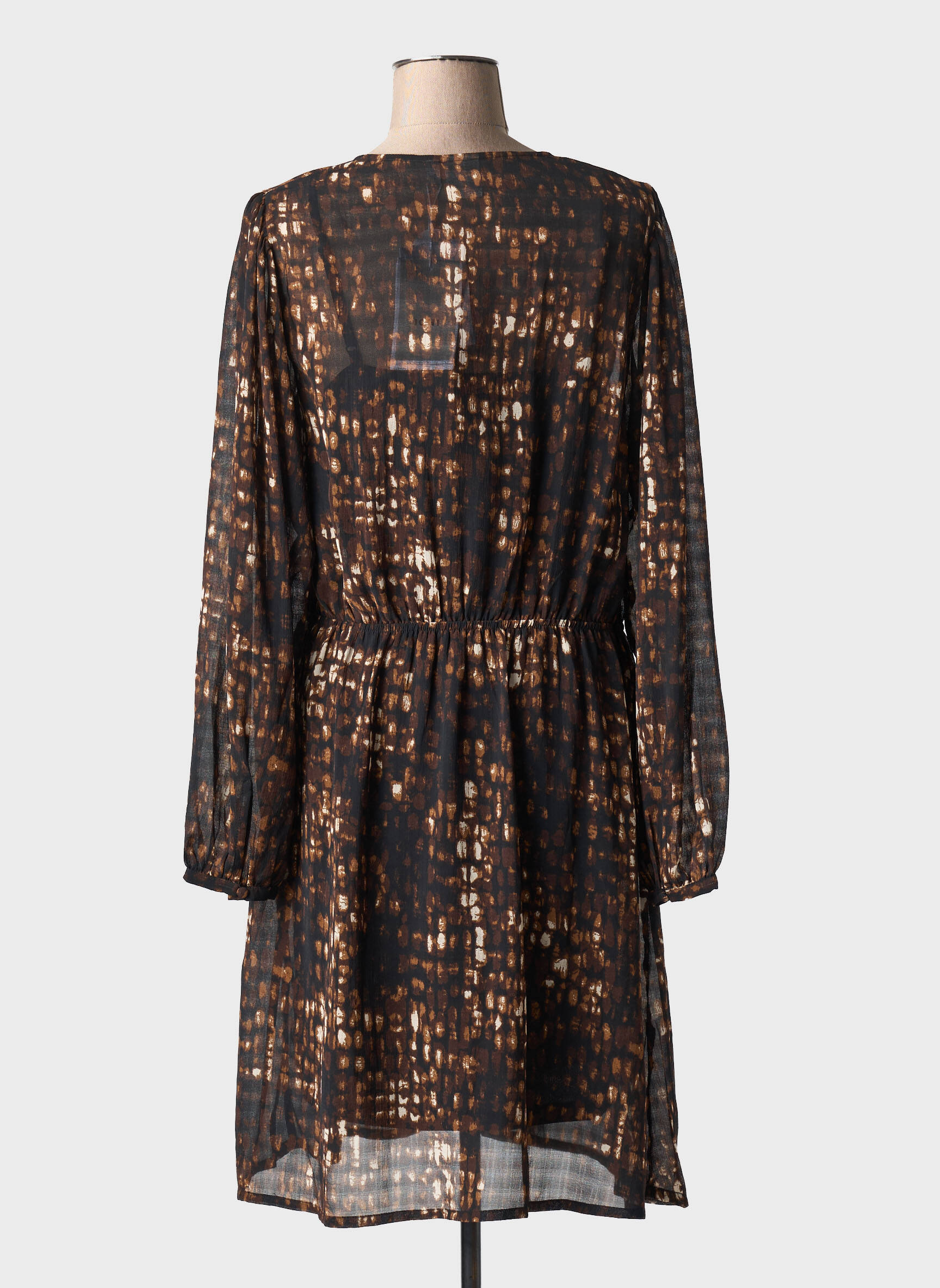 Robe Mi-longue Ichi Marron Manches Longues