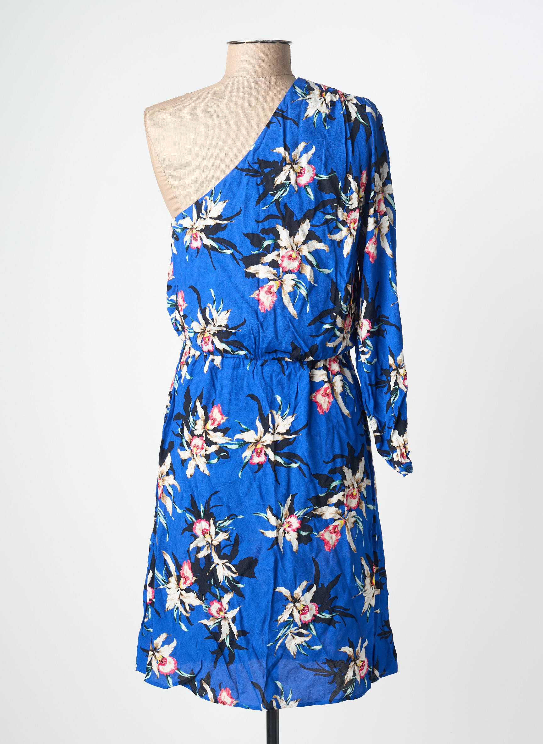 Craquez pour cette robe mi-longue IKKS à prix déstockage, un vrai bon plan pour ajouter une touche originale à votre garde-robe sans vous ruiner. Son imprimé floral éclatant sur fond bleu rehausse l’allure et son effet asymétrique avec une manche longue et une épaule dénudée apporte une note à la fois élégante et moderne. Vous allez adorer ce modèle parfait pour un look tendance et féminin, idéal à ce prix malin !