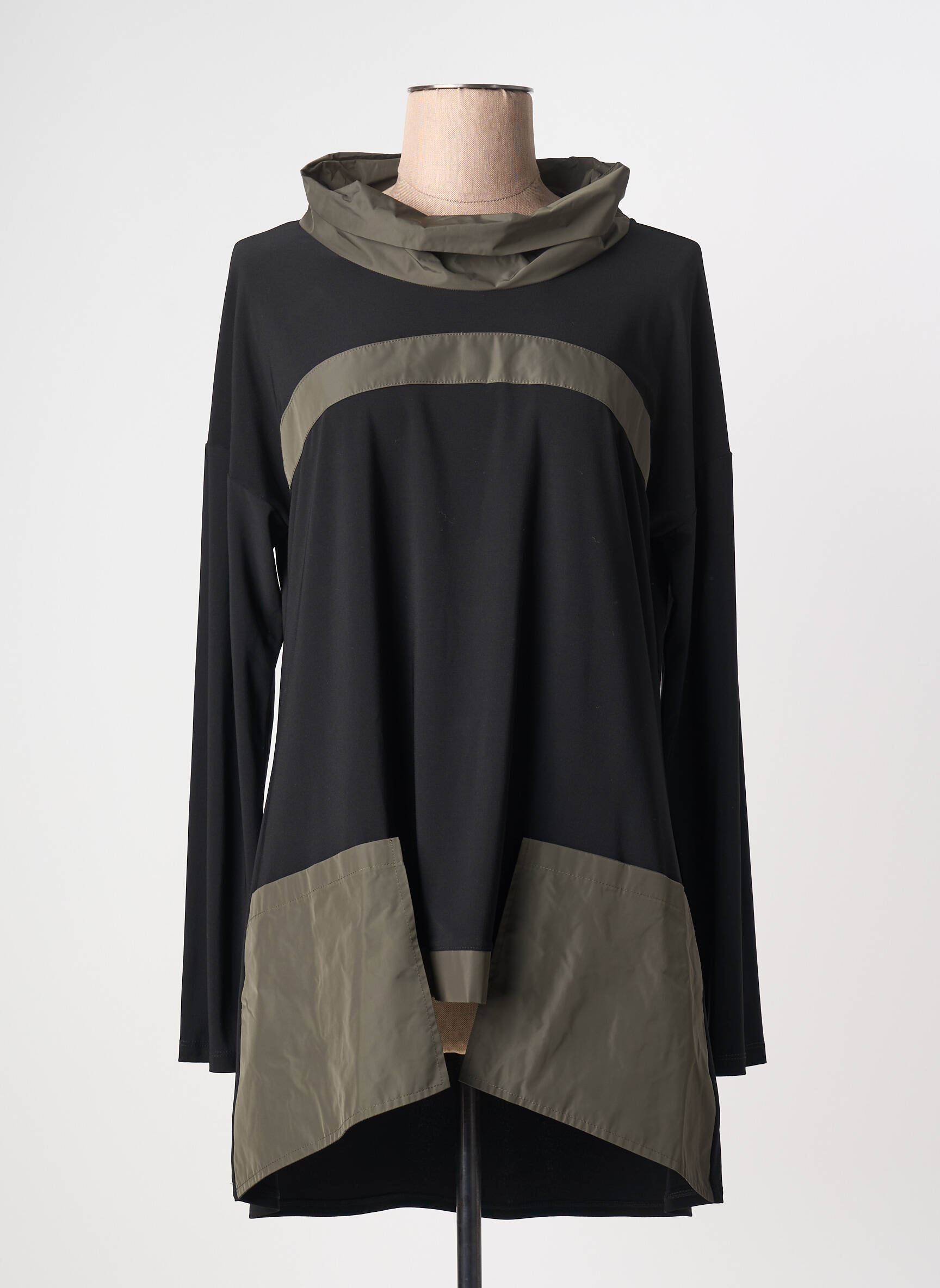 Profitez d’un bon plan exceptionnel avec cette robe mi-longue signée JOSEPH RIBKOFF, alliant élégance moderne et confort grâce à une coupe fluide et des détails contrastants ultra tendance. Les touches kaki apportent une dimension sophistiquée au noir profond, tandis que la coupe asymétrique du bas et le col original ajoutent une note contemporaine parfaite pour se démarquer sans se ruiner. Offrez-vous une pièce unique à prix doux pour un look chic et audacieux au quotidien.