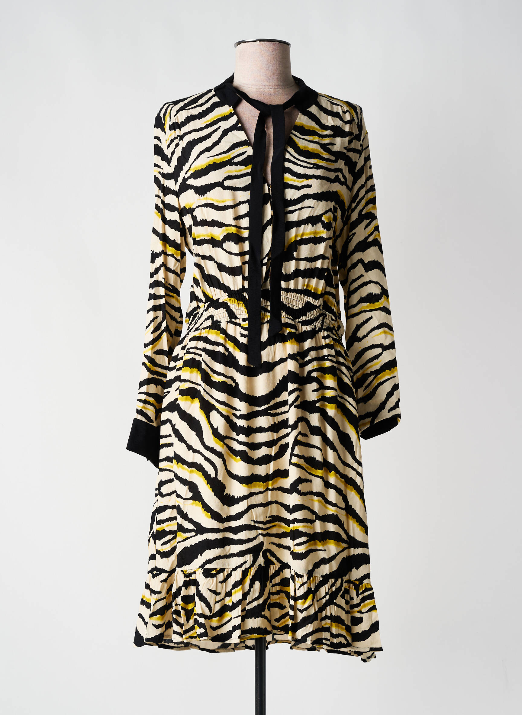 Craquez pour cette robe mi-longue JUS D'ORANGE à prix canon, une pièce idéale pour apporter une touche audacieuse à votre dressing sans vous ruiner. Son motif zébré original mêle avec élégance des teintes naturelles et des touches de noir graphique, tandis que le détail de l'encolure fendue et les poignets contrastés subliment la silhouette avec raffinement. Profitez d’un look tendance et dynamique, parfait pour faire sensation tout en préservant votre budget.