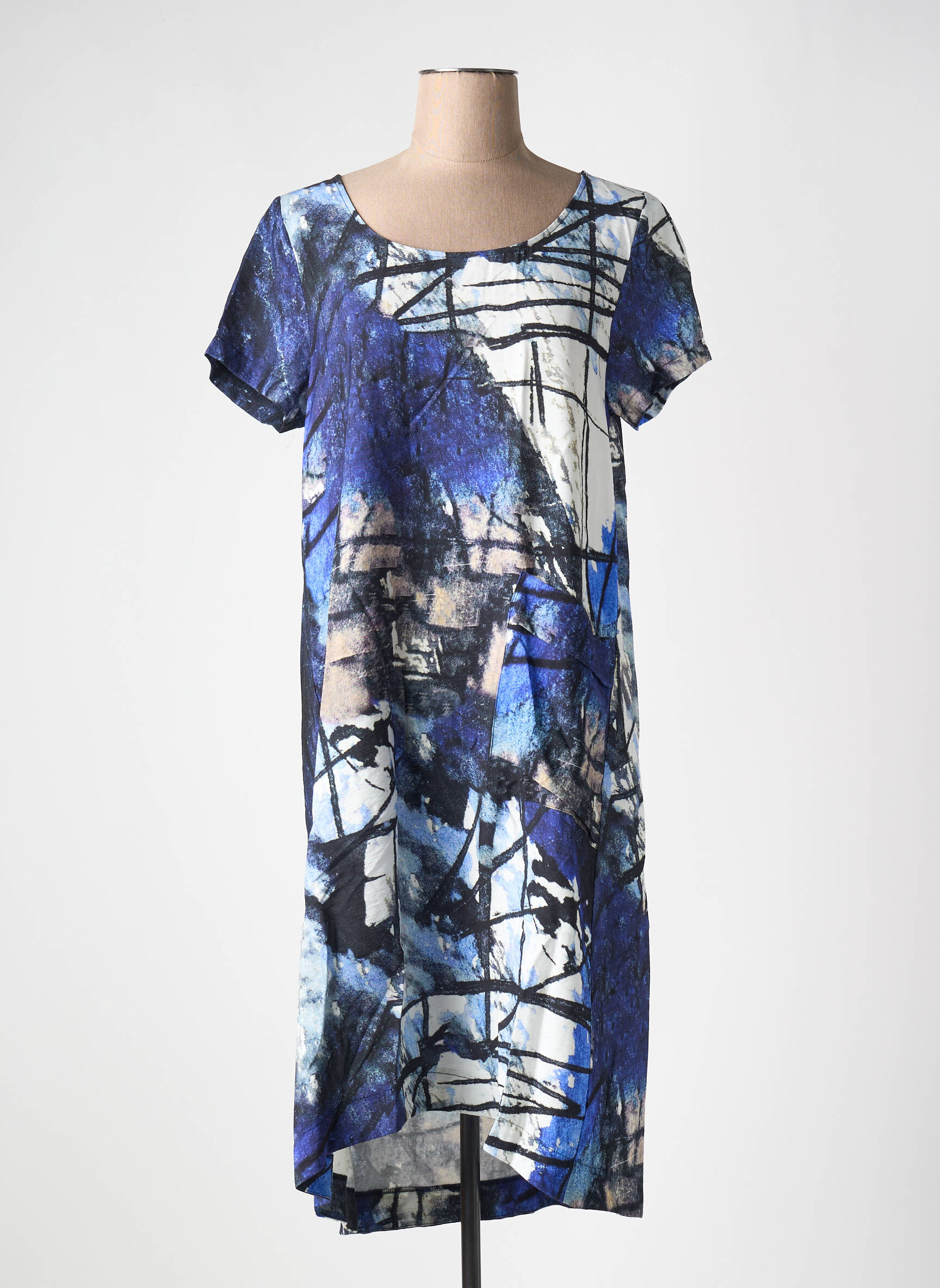Profitez d’un bon plan mode avec cette robe mi-longue de la marque K, idéale pour shopper une pièce tendance à petit prix. Sa coupe droite et fluide met en valeur toutes les silhouettes, tandis que l’imprimé artistique mêlant bleu, noir et blanc apporte une touche d’originalité à votre dressing. Son col rond et ses manches courtes en font une alliée de choix pour des looks décontractés ou plus habillés sans se ruiner, parfaite pour faire rimer style et économies.