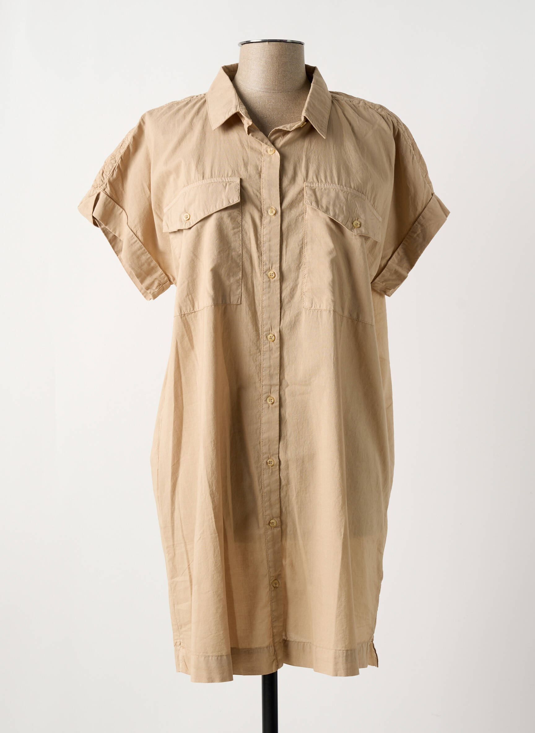 Robe Mi-longue Kanope Beige Manches Courtes