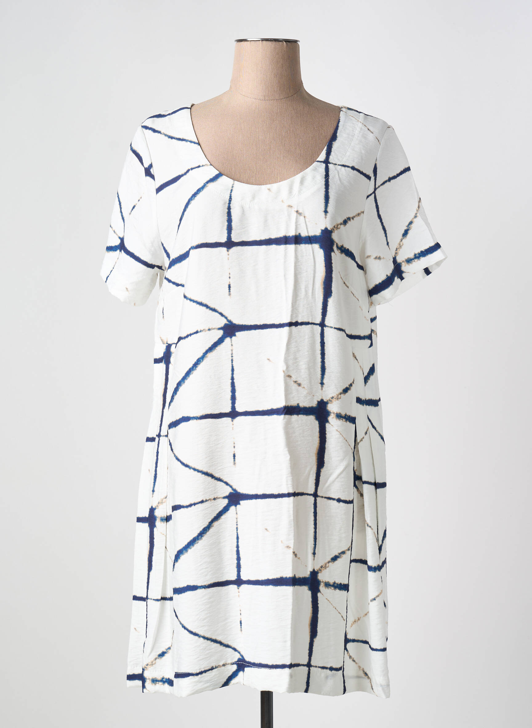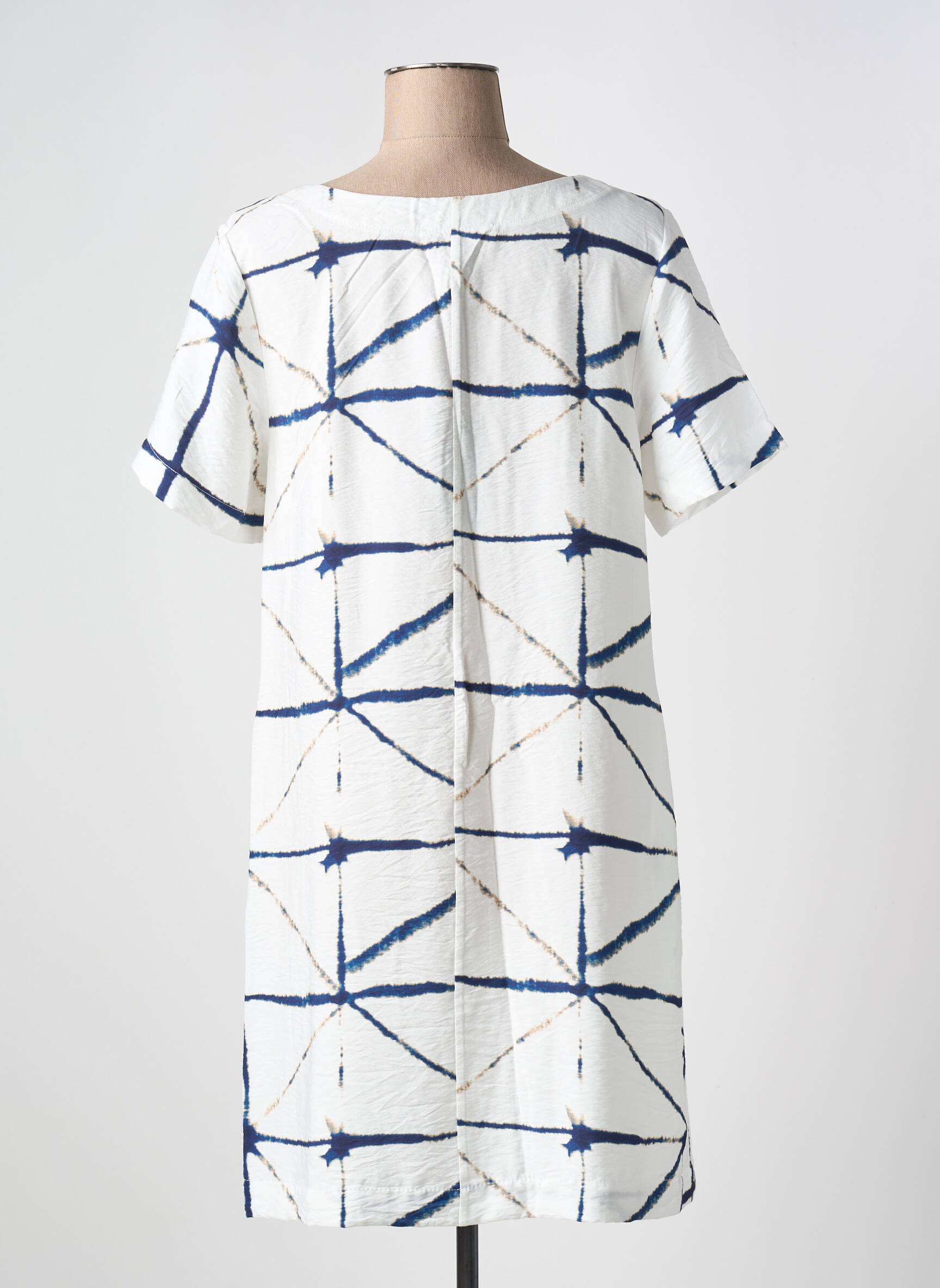 Craquez pour cette robe mi-longue KOKOMARINA pour femme, un vrai bon plan à petit prix pour apporter une touche graphique et moderne à votre garde-robe. Avec sa coupe confortable, son motif original façon tie-dye en bleu marine sur fond blanc et ses manches courtes, elle vous accompagne avec style aussi bien au quotidien que pour vos sorties estivales. Son encolure arrondie féminise la silhouette tout en restant facile à porter, idéale pour celles qui veulent se faire plaisir sans se ruiner.