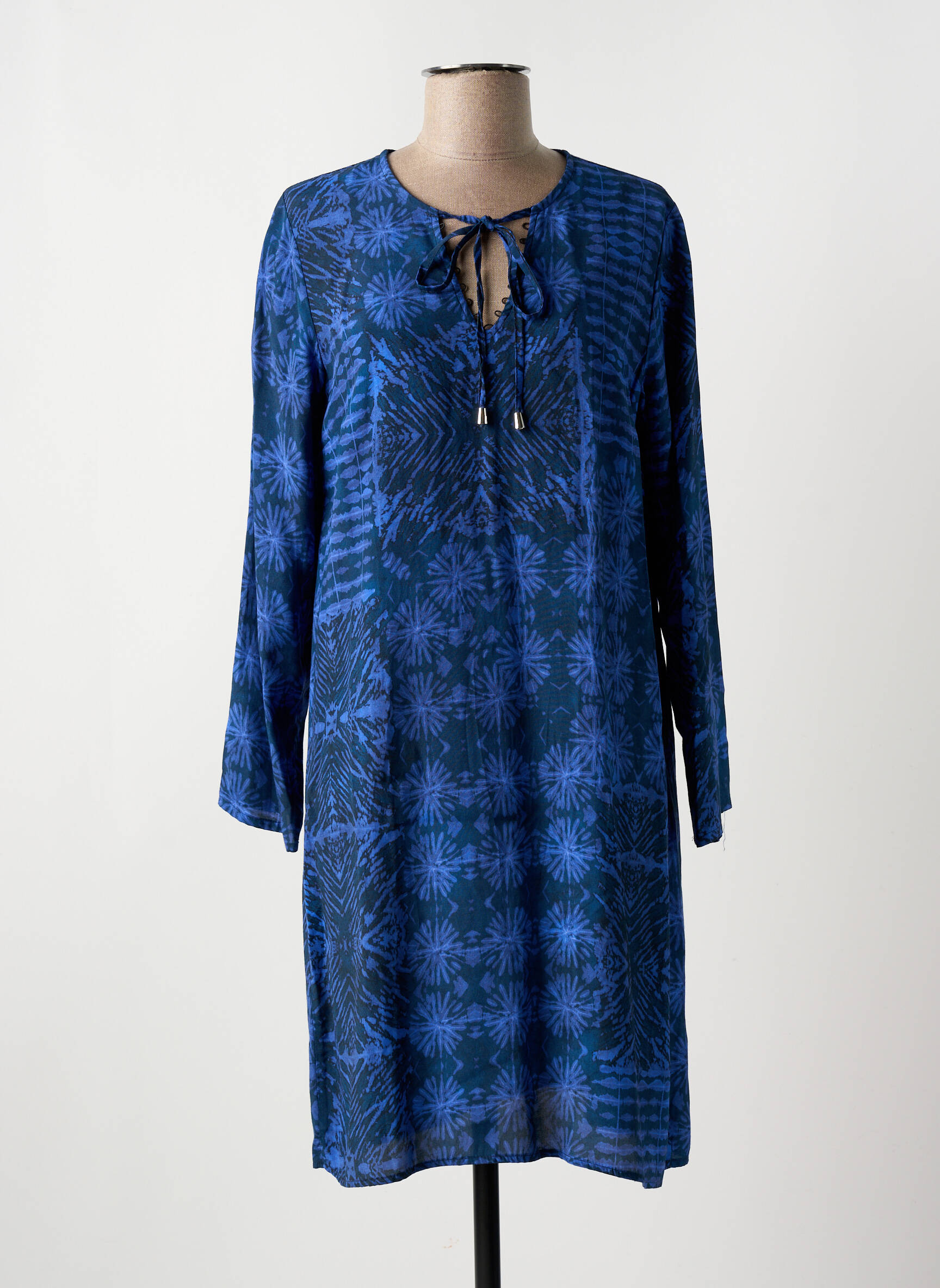 Saisissez l’occasion de vous offrir cette robe mi-longue signée LA FEE MARABOUTEE à prix mini, idéale pour renouveler votre dressing tout en faisant des économies. Ce modèle pour femme séduit par son imprimé bleu intense aux motifs géométriques et son encolure à liens coulissés décoratifs, tout en misant sur une coupe droite fluide et des manches longues parfaites pour un look élégant en toute facilité. Ce bon plan vous permet de profiter du style tendance et raffiné de la marque sans vous ruiner.