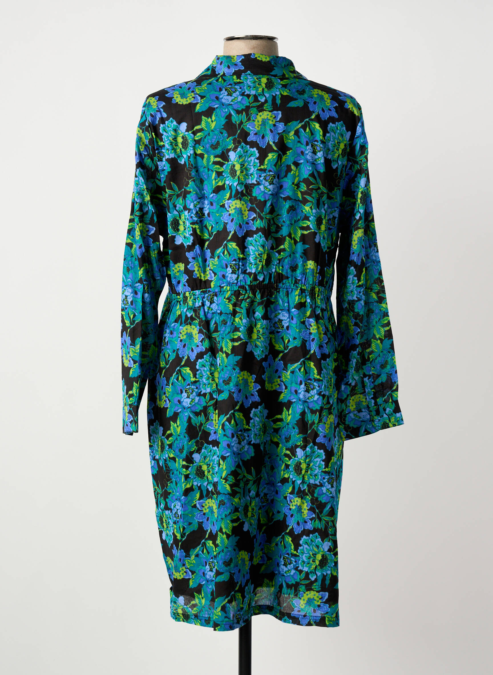 Craquez pour cette robe mi-longue LA FIANCÉE pour femme, parfaite pour dynamiser votre dressing sans vous ruiner, grâce à son superbe imprimé floral aux nuances de bleu et de vert qui se détache avec élégance sur un fond noir, sa coupe fluide et son col chemise qui apportent une touche de modernité facile à porter au quotidien comme en soirée, le tout à prix mini pour profiter d’un look tendance à petit budget.