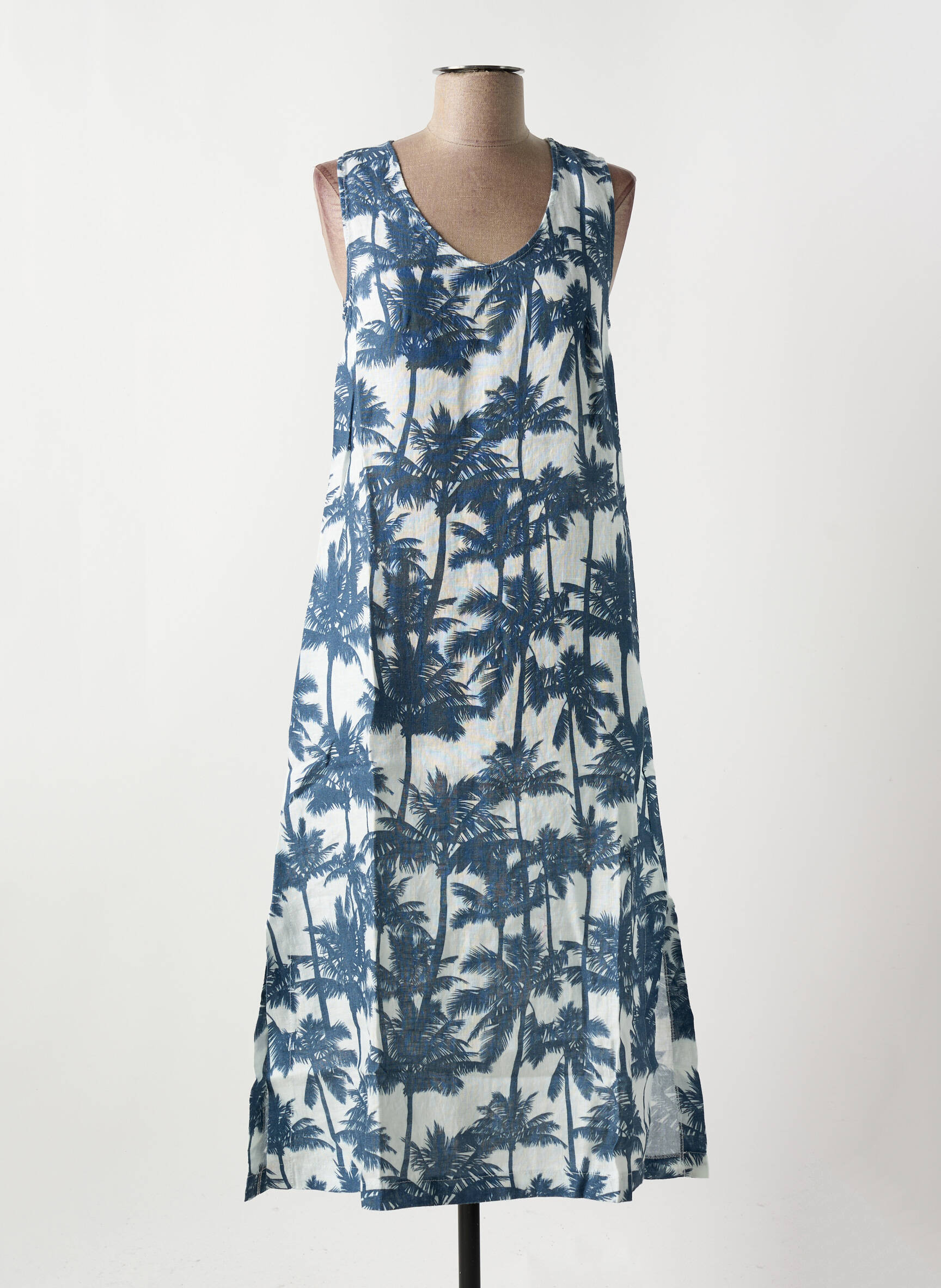 Craquez pour cette robe mi-longue signée LE BOUDOIR D'EDOUARD, la pièce idéale pour sublimer vos journées sans vous ruiner. Son imprimé bleu aux palmiers apporte une touche d'exotisme et de fraîcheur à votre tenue, tandis que sa coupe fluide sans manches promet une allure élégante et décontractée, parfaite pour profiter de l'été à petit prix.
