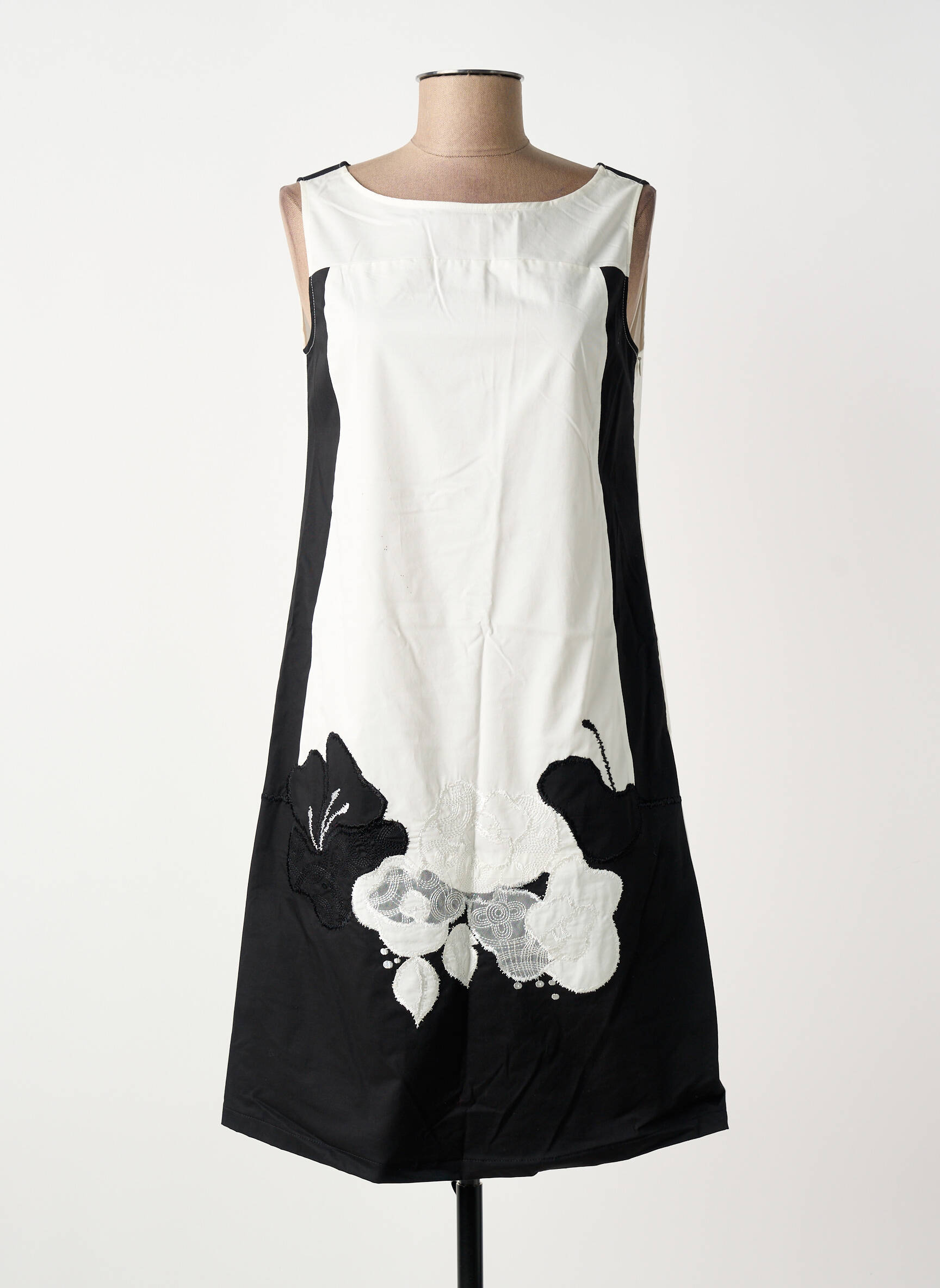 Profitez d’un bon plan en craquant pour cette robe mi-longue LESLIE, un modèle élégant qui joue sur le contraste du noir et blanc avec une touche florale raffinée en bas de la jupe ; idéale pour mettre votre silhouette en valeur à petit prix tout en affichant un style chic et intemporel.