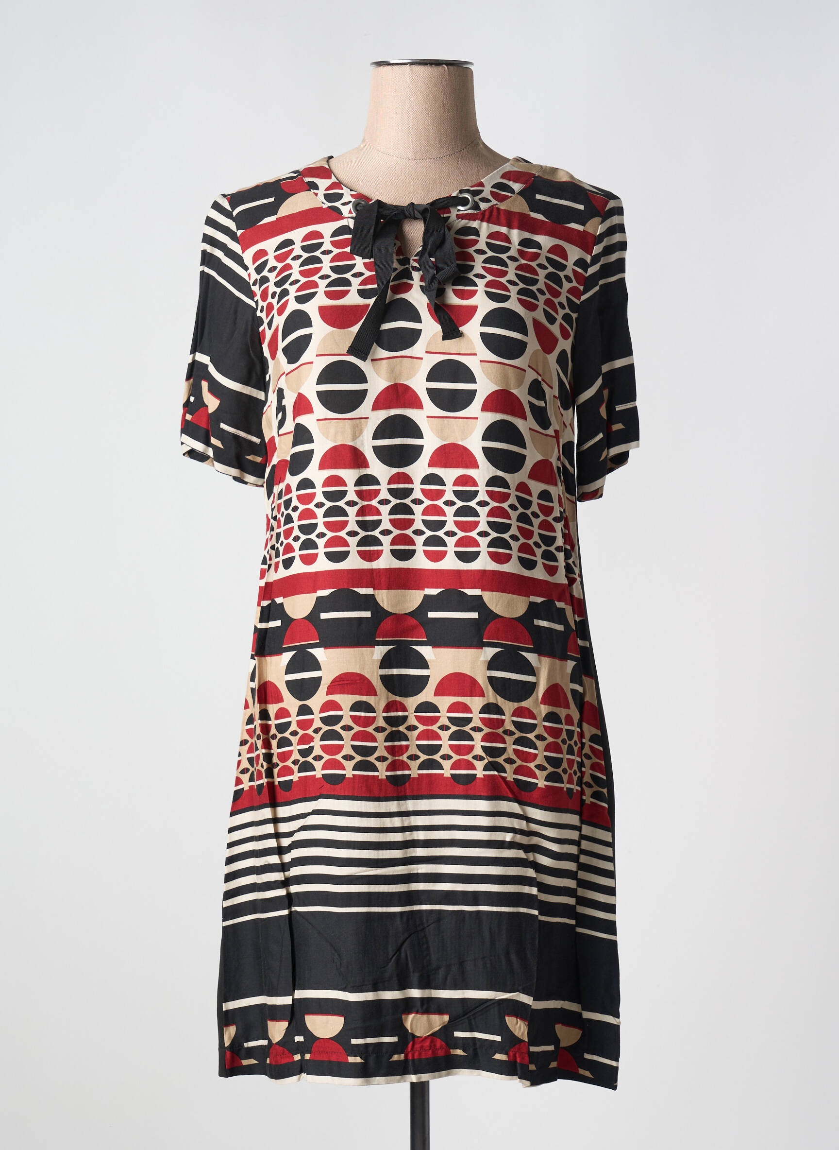 Profitez d'un véritable bon plan avec cette robe mi-longue LILI & CAROLINE, qui combine petits prix et look original pour ajouter une touche de style à votre dressing sans vous ruiner. Son imprimé géométrique aux tons rouges, beige et noirs lui donne un caractère moderne, tandis que la coupe fluide et le détail du nœud au col assurent un confort parfait pour toutes les occasions. Saisissez vite cette pièce tendance à prix tout doux avant qu'elle ne disparaisse !
