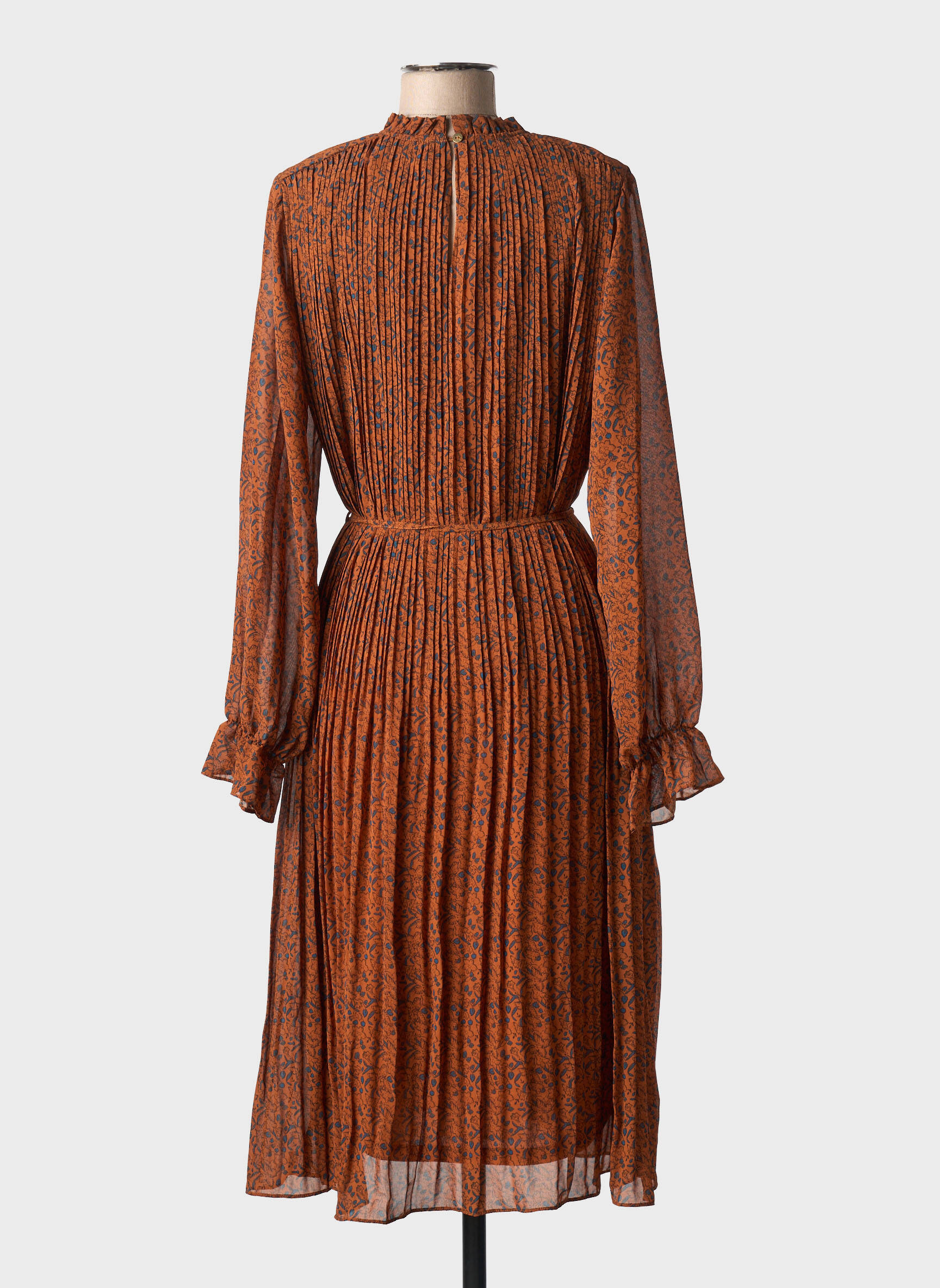 Robe Mi-longue Louche Marron Manches Longues