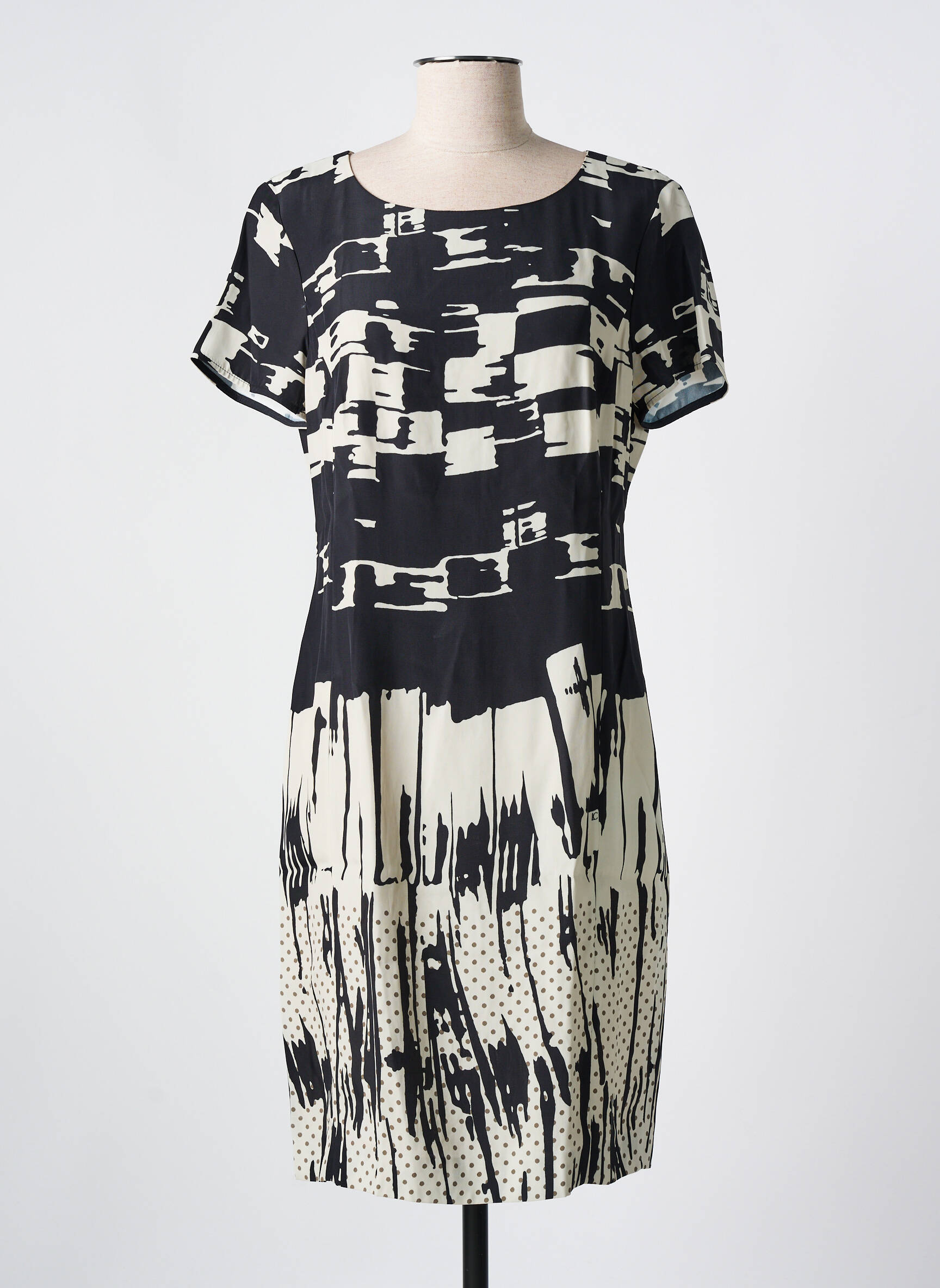 Plongez dans un univers où l'art rencontre la mode avec cette robe mi-longue signée LUISA CERANO, véritable ode aux couleurs et aux formes. Son design audacieux se distingue par un mélange dynamique de motifs abstraits en noir et blanc qui évoque une modernité raffinée. La coupe fluide et légèrement cintrée flattera la silhouette tout en offrant un confort sans pareil. Dotée de manches courtes, cette robe est idéale pour les journées ensoleillées ou les soirées décontractées, apportant une touche d'élégance dans chaque mouvement. Associez-la à des accessoires minimalistes pour un look sublimement chic.