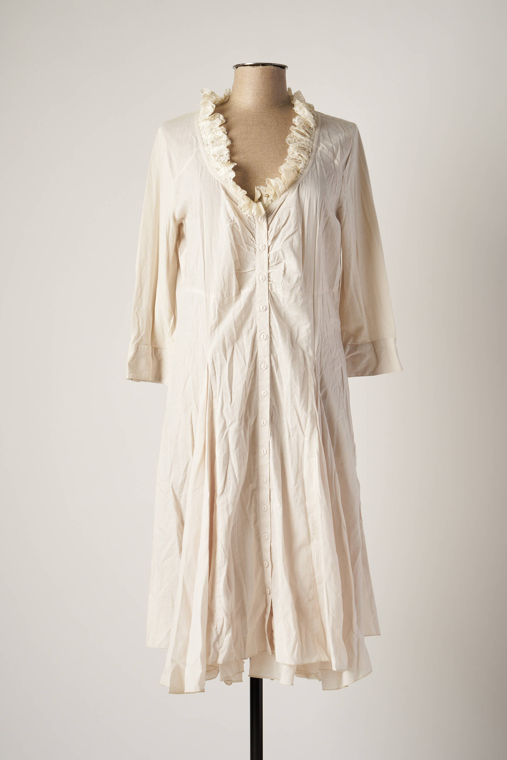 Robe Mi-longue Mais Il Est Ou Le Soleil Beige Manches 3/4
