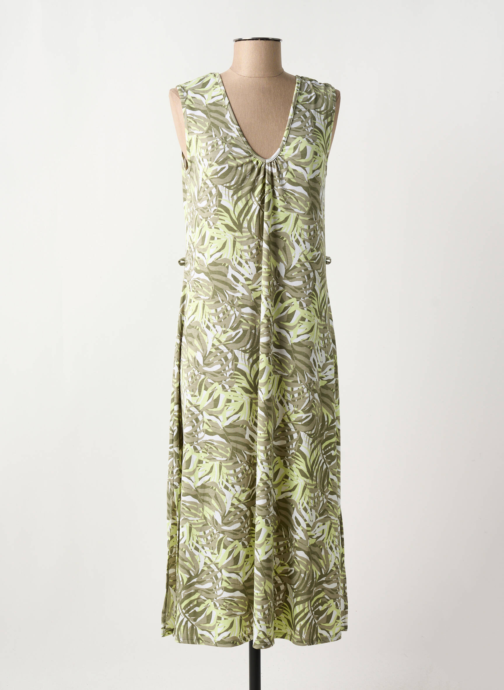 Profitez d’une véritable opportunité avec cette robe mi-longue MARBLE pour femme, parfaite pour celles qui recherchent une pièce tendance sans se ruiner. Avec son imprimé feuillage aux nuances douces de vert et de beige, son encolure en V flatteuse et sa coupe fluide qui met en valeur la silhouette tout en offrant un confort optimal, cette robe s’impose comme l’alliée idéale des beaux jours à prix déstocké.