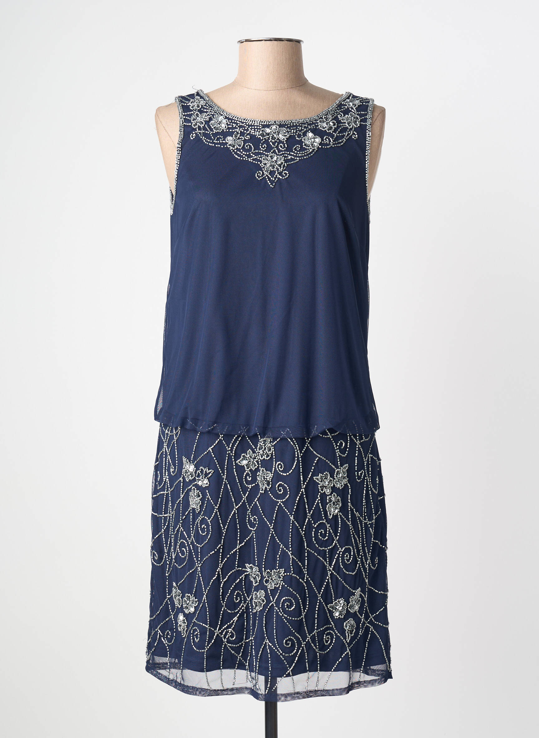 Craquez pour cette élégante robe mi-longue MARFIL pour femme, un vrai bon plan pour celles qui cherchent à se faire plaisir sans se ruiner. Ce modèle arbore une jolie coupe droite et fluide, parfait pour sublimer toutes les silhouettes lors d’occasions spéciales. Son tissu bleu profond est subtilement rehaussé de magnifiques broderies argentées sur le col et sur la partie jupe, apportant une touche sophistiquée et raffinée. L’ensemble offre un rendu léger et délicat, idéal pour une allure chic à petit prix.