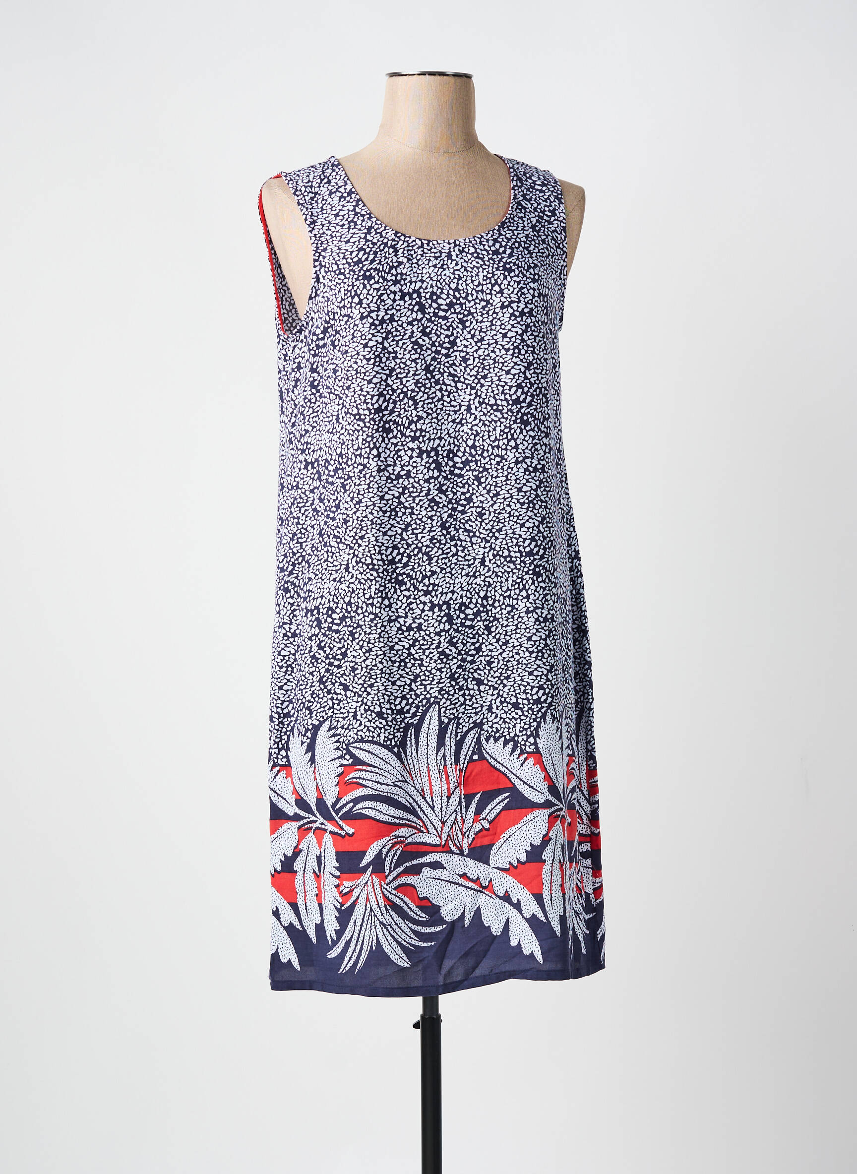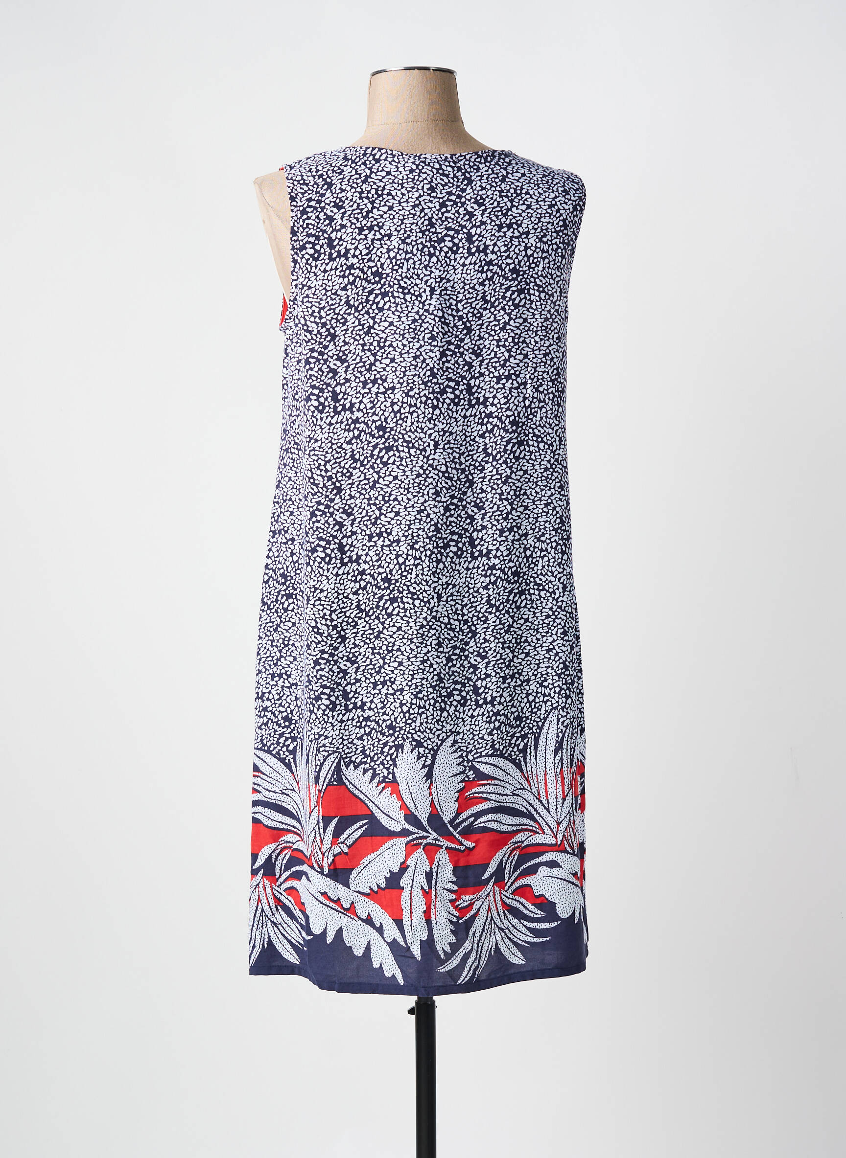 Saisissez l’opportunité de vous offrir cette robe mi-longue de la marque MASSANA à prix malin, parfaite pour celles qui souhaitent allier style et budget maîtrisé. Son motif délicat allie un imprimé moucheté moderne sur le haut à un motif feuillage coloré en bas, rehaussé de touches rouges et blanches qui apportent de la fraîcheur à votre tenue. Sa coupe droite sans manches assure un confort optimal tout en mettant en valeur la silhouette de façon naturelle, idéale pour profiter des beaux jours sans compromis entre élégance et petits prix.