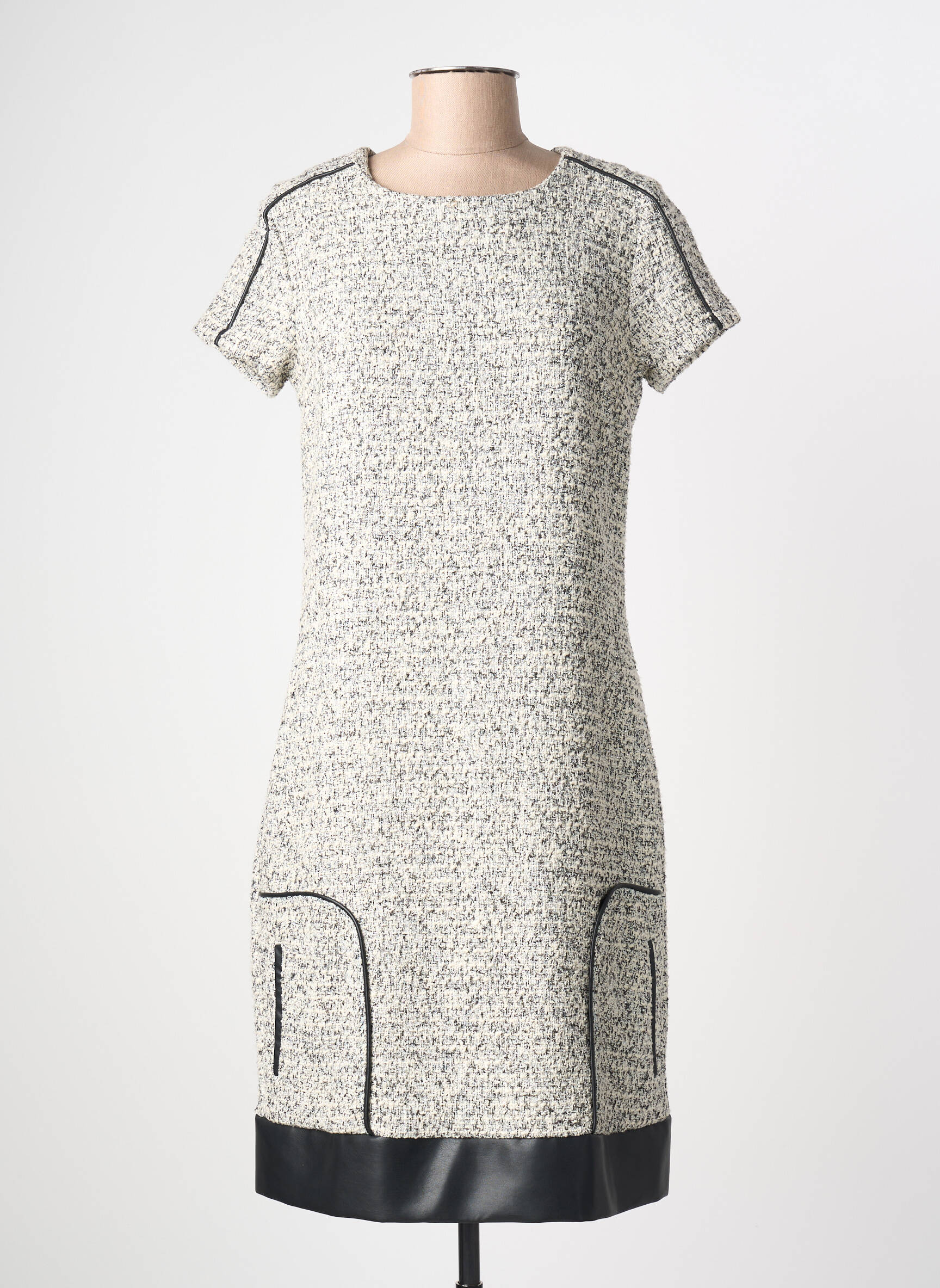 Profitez d’une superbe occasion d’ajouter une pièce tendance à petit prix dans votre garde-robe avec cette robe mi-longue MERI & ESCA pour femme, qui séduit par sa coupe droite et son motif chiné délicat, relevé par de beaux détails contrastés noirs aux épaules, aux poches et à la base pour une touche moderne et élégante sans vous ruiner.