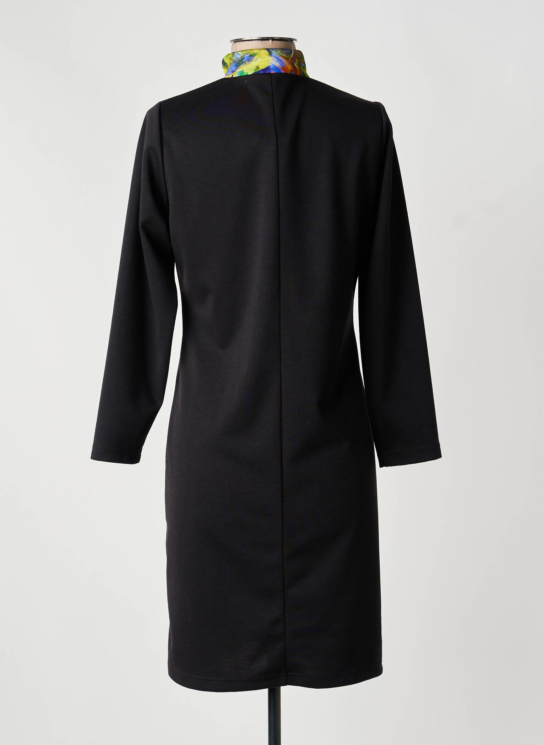 Pour mettre en valeur cette robe, vous pouvez simplement l’enfiler avec une paire de bottines noires pour un style urbain ou allonger la silhouette avec des escarpins sobres. Ajoutez une veste courte unie ou un trench selon la saison et misez sur des accessoires discrets afin de mettre en avant le motif coloré. Un petit sac à main noir ou bleu nuit sera parfait pour compléter la tenue sans surcharger l’ensemble.