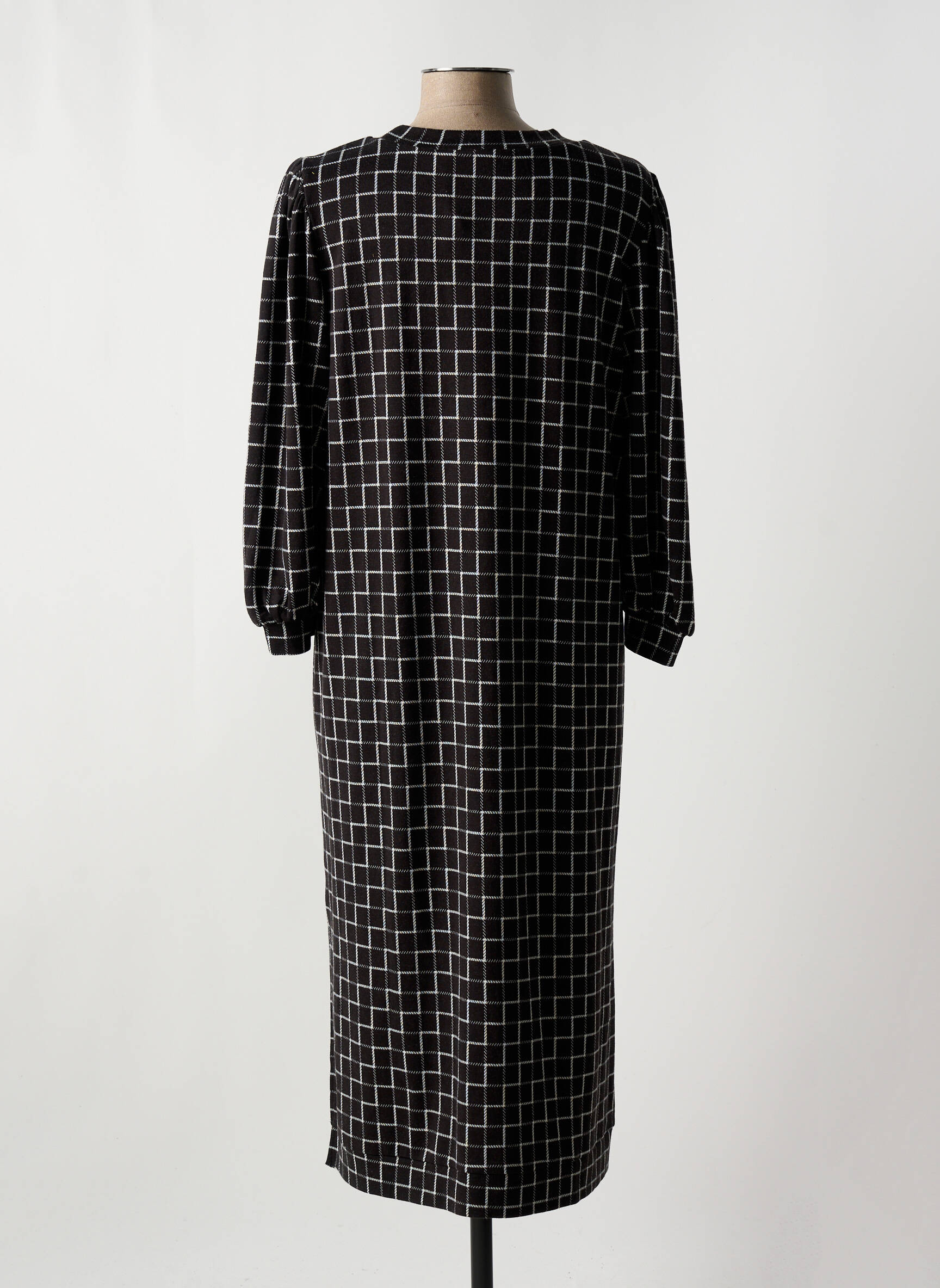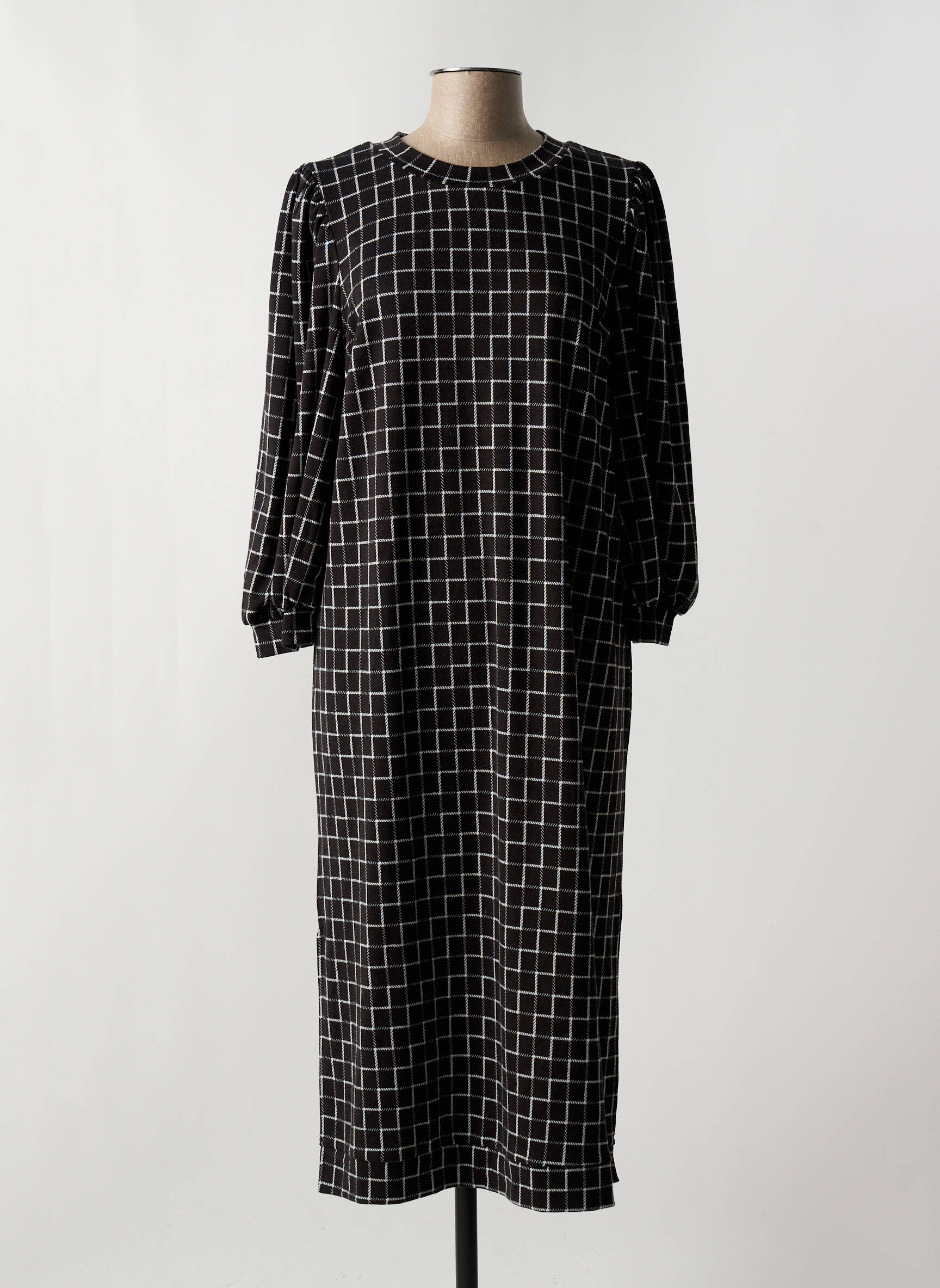 Imaginez une robe qui transcende les codes classiques tout en apportant une touche de modernité discrète; cette robe mi-longue de la marque MINIMUM pour femme allie une coupe droite et élégante à un motif géométrique en carreaux blancs sur fond noir, offrant un équilibre parfait entre sobriété et caractère. Les manches longues légèrement bouffantes ajoutent une dimension subtile de féminité et de confort, tandis que l'encolure ronde souligne délicatement le port de tête, faisant de cette pièce un choix idéal pour une silhouette à la fois contemporaine et raffinée.