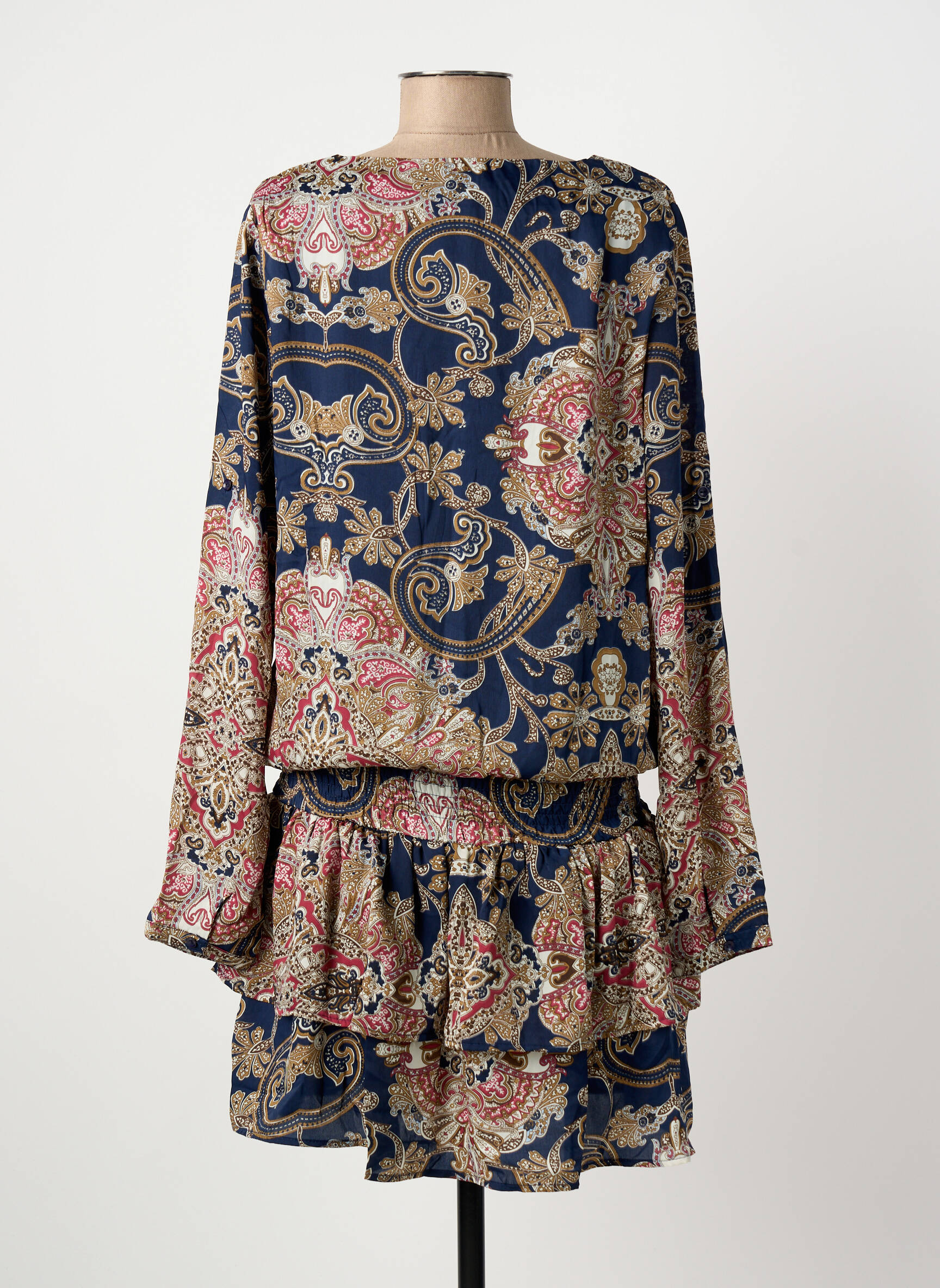 Craquez pour cette robe mi-longue MISMASH à prix mini, une opportunité idéale pour donner du style à votre garde-robe sans vous ruiner. Avec son élégant imprimé aux tons bleu marine et motifs cachemire rehaussés de touches roses et dorées, cette robe offre une allure bohème chic tout en restant facile à porter au quotidien grâce à sa coupe fluide et confortable. Profitez de cette pièce tendance à petit prix pour apporter une touche originale et sophistiquée à votre dressing, parfaite pour toutes vos occasions.