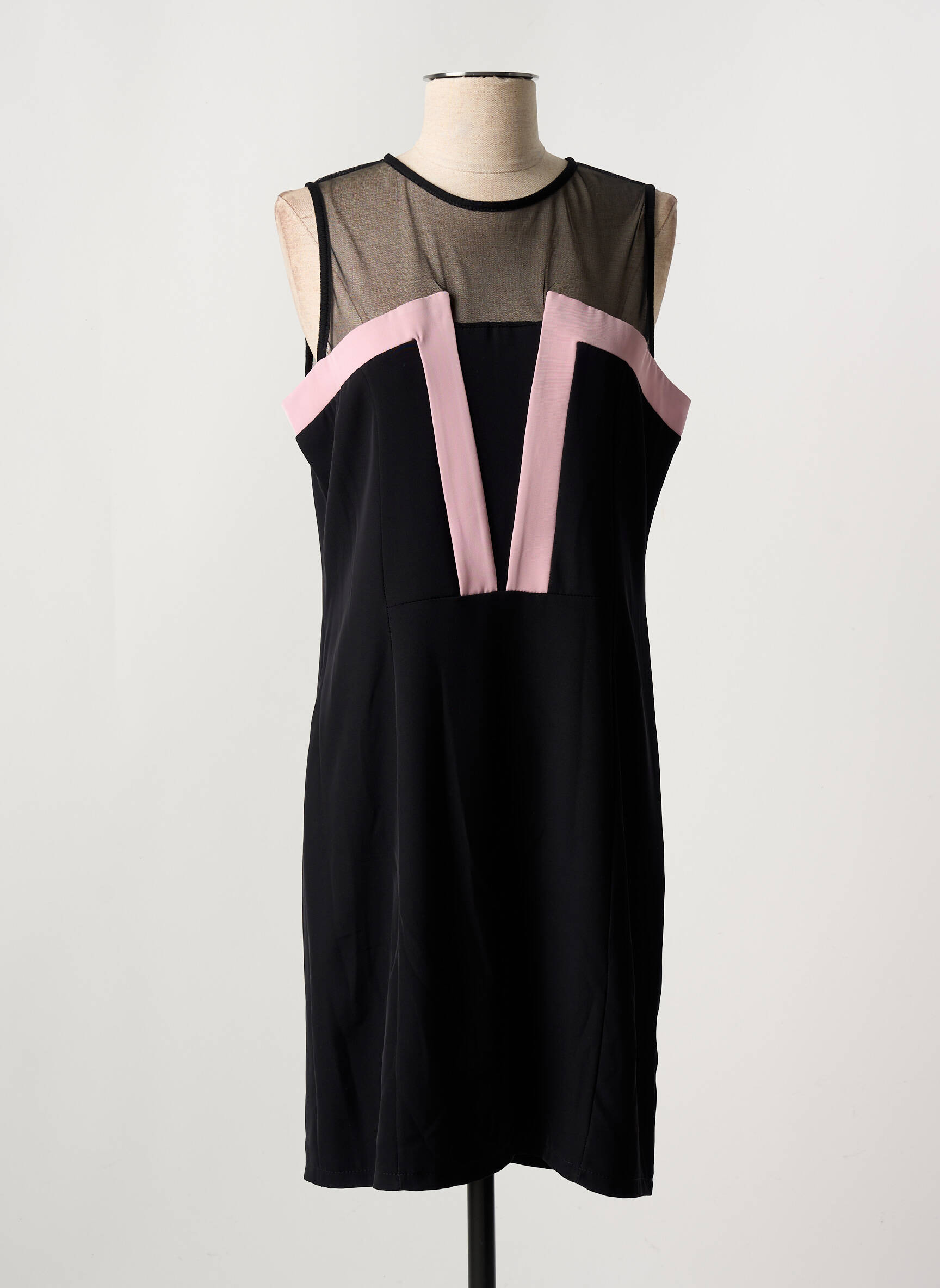 Craquez pour cette robe mi-longue MISS SIDECAR, une pièce tendance à prix mini parfaite pour sublimer votre silhouette sans vous ruiner. Son jeu de transparence au niveau du buste, rehaussé par un élégant empiècement noir et des bandes contrastantes rose poudré, vous garantit un look moderne et raffiné pour toutes vos occasions.
