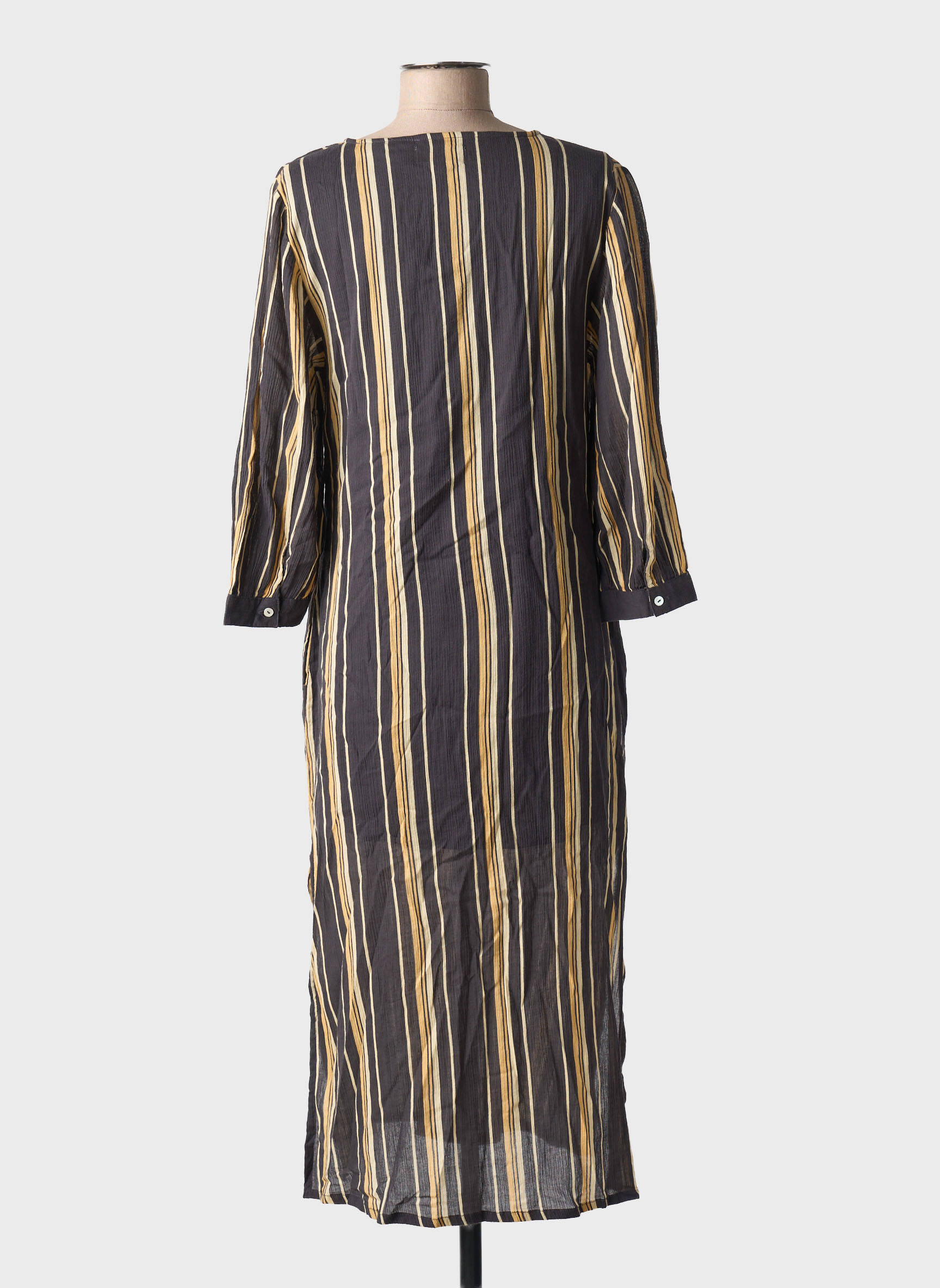 Profitez d’un véritable bon plan mode avec cette robe mi-longue signée MKT STUDIO, idéale pour apporter une touche d’élégance décontractée à votre garde-robe sans vous ruiner ; son imprimé à rayures verticales joue sur des tons sobres relevés de touches lumineuses, sa coupe droite et son col en V flatteront votre silhouette tout en assurant un confort au quotidien, une pièce tendance à petit prix parfaite pour renouveler votre style sans compromis.