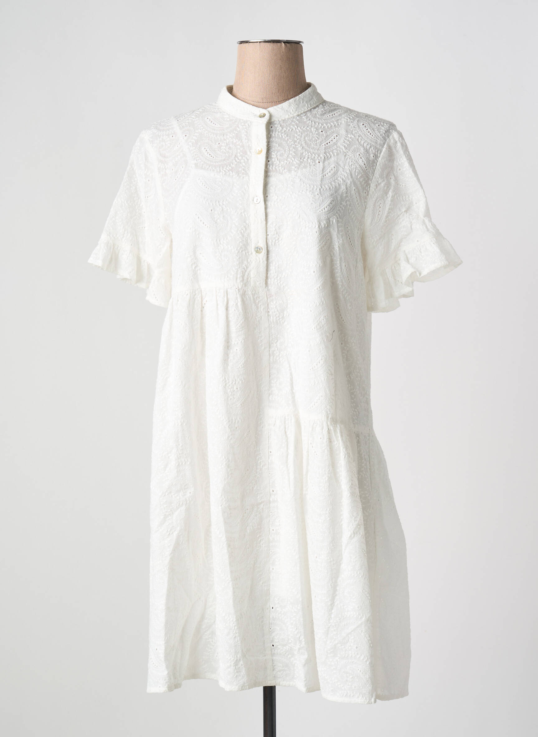 Craquez pour cette robe mi-longue MOLLY BRACKEN, un véritable bon plan pour sublimer votre dressing à prix tout doux. Son délicat tissu blanc, son col montant boutonné et ses manches courtes légèrement volantées apportent une touche de fraîcheur et d’élégance, tout en restant facile à porter au quotidien. Profitez de cette pièce tendance et féminine à prix mini, parfaite pour faire rimer style et économies.