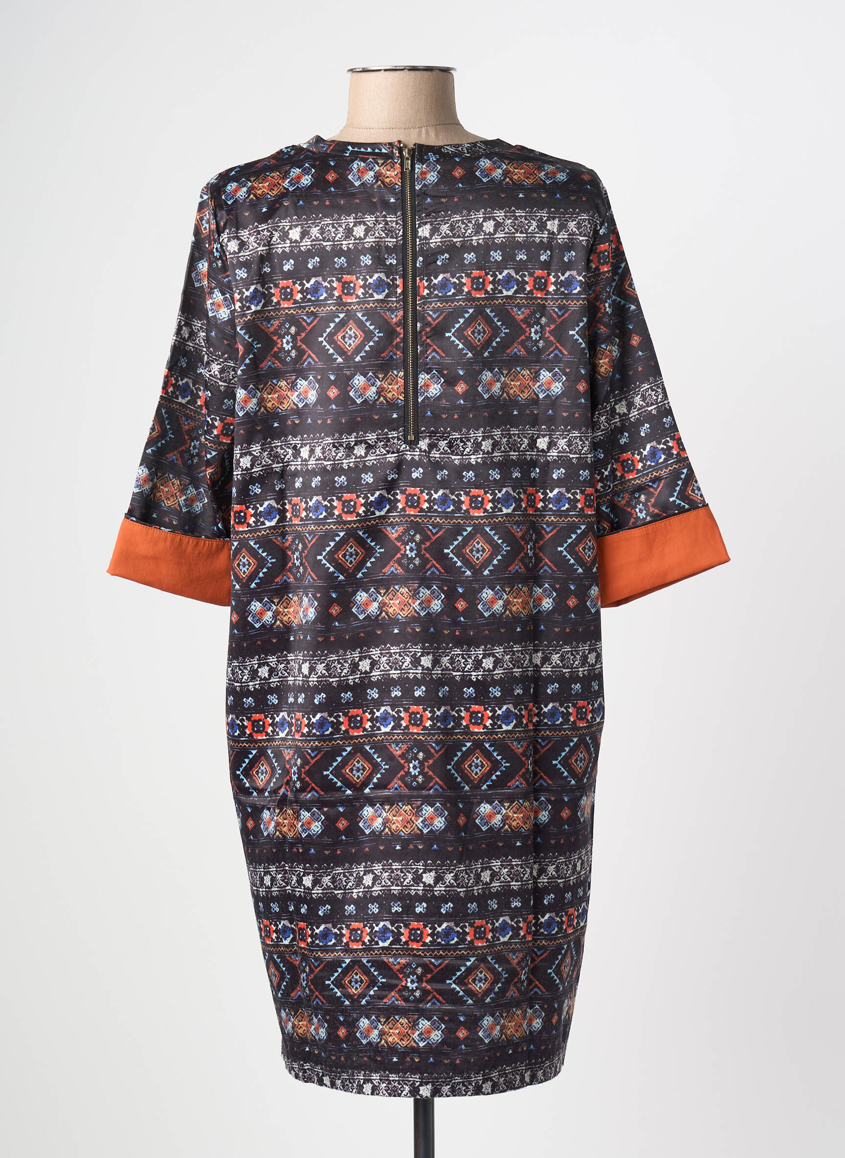 Profitez d’une occasion unique pour donner du style à votre dressing sans vous ruiner avec cette robe mi-longue MOLLY BRACKEN. Avec son imprimé graphique et ses motifs géométriques aux tons contrastés, elle apporte une touche tendance et moderne à votre look tout en restant facile à porter au quotidien. Les manches mi-longues, rehaussées d’un joli revers orange, ajoutent une note d’originalité qui ne passe pas inaperçue. Un vrai bon plan pour adopter une pièce de marque à prix doux, parfaite pour se démarquer sans compromettre son budget.