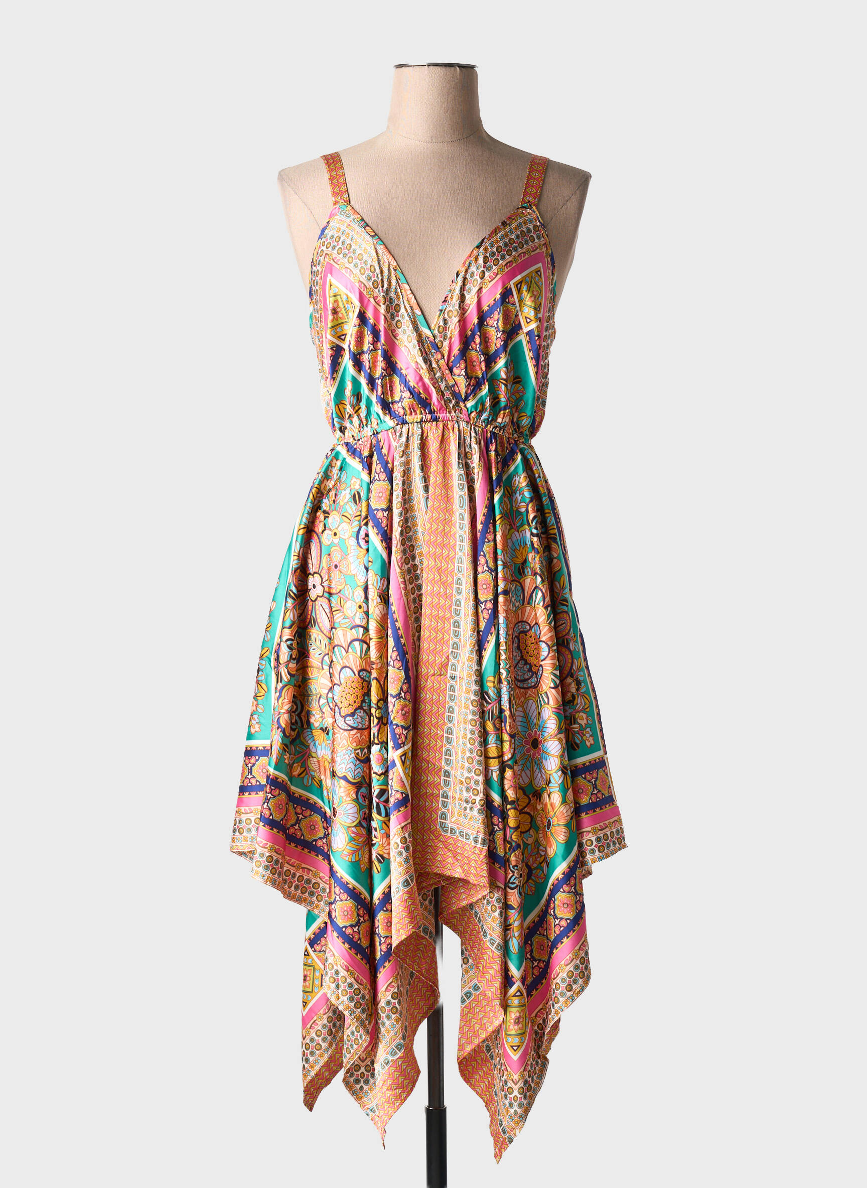 Profitez d’un bon plan mode avec cette robe mi-longue signée MOLLY BRACKEN, idéale pour se faire plaisir sans se ruiner. Ce modèle séduit par son imprimé coloré et lumineux qui ajoute une touche bohème à votre look, tandis que ses bretelles fines et son buste croisé mettent en valeur la silhouette. La coupe fluide et l’ourlet asymétrique offrent une allure élégante et légère, parfait pour les journées ensoleillées ou une soirée d’été à petit prix.