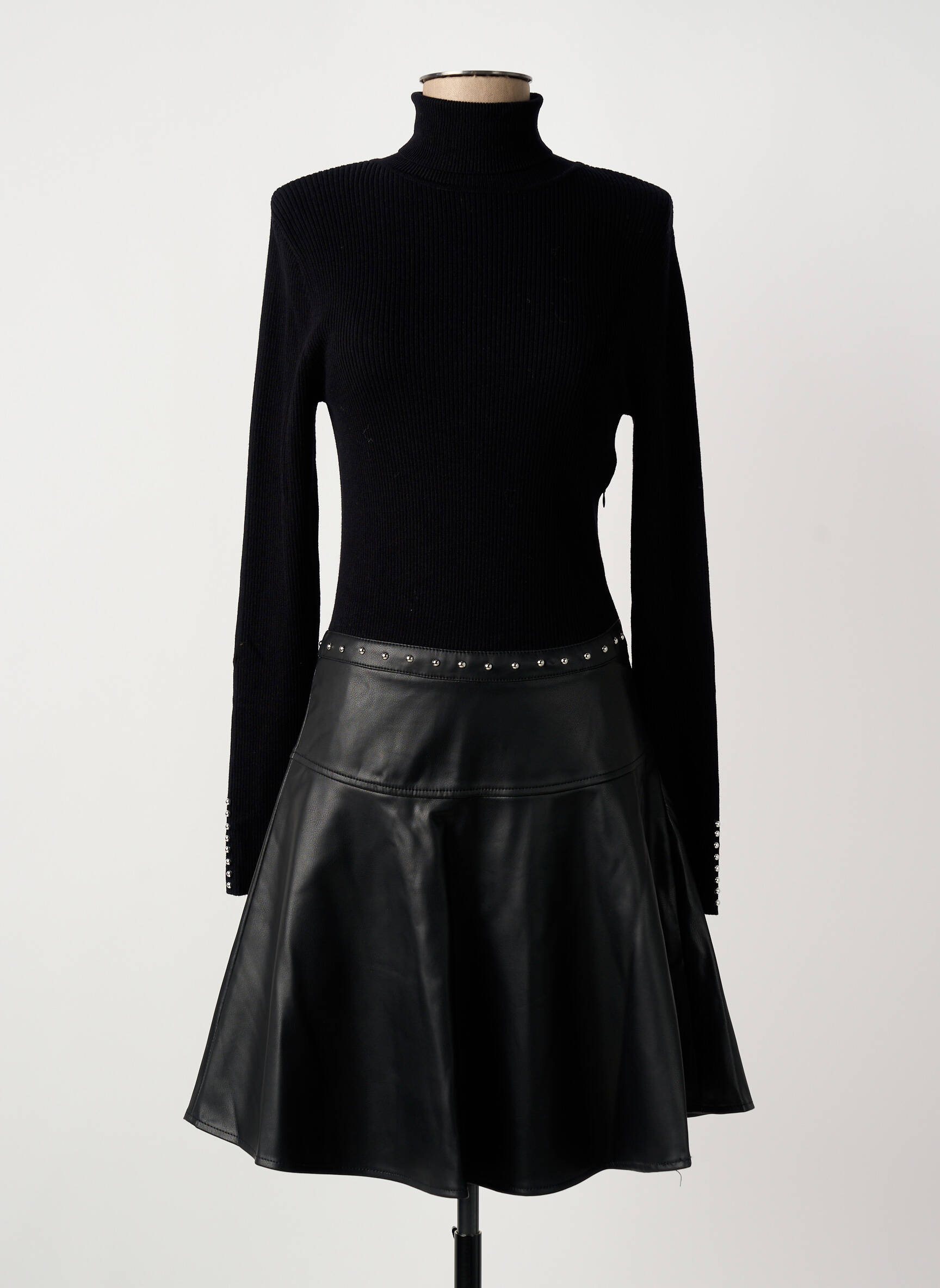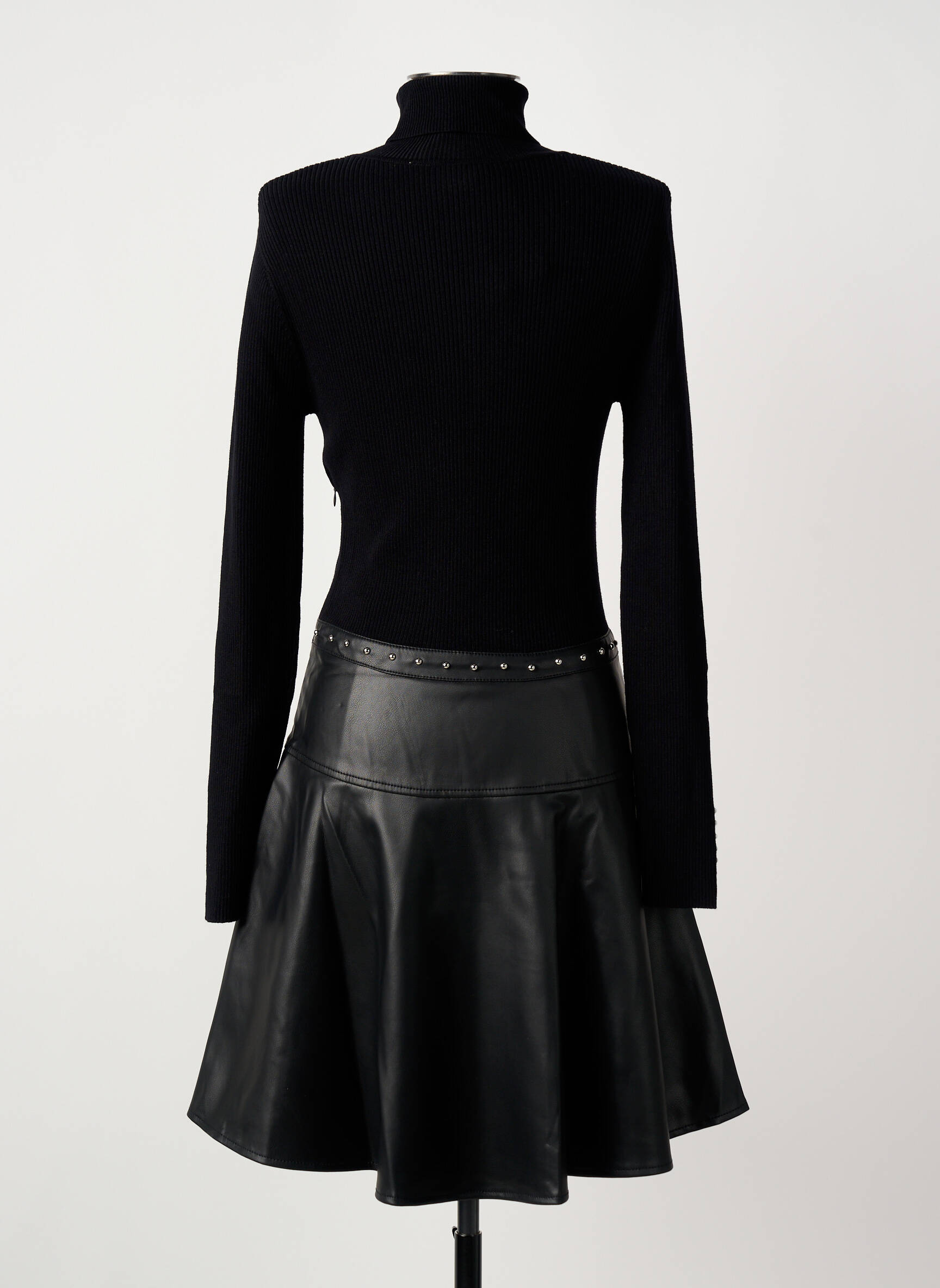 Profitez d’un véritable bon plan avec cette robe mi-longue MORGAN pour femme, alliant élégance et modernité à petit prix. Son haut ajusté à manches longues et col montant met en valeur la silhouette, tandis que sa jupe évasée effet cuir, rehaussée de petits rivets au niveau de la taille, apporte une touche rock et originale à votre look. Cette pièce raffinée vous permet de rester tendance sans vous ruiner, idéale pour celles qui aiment faire des économies tout en se distinguant avec style.