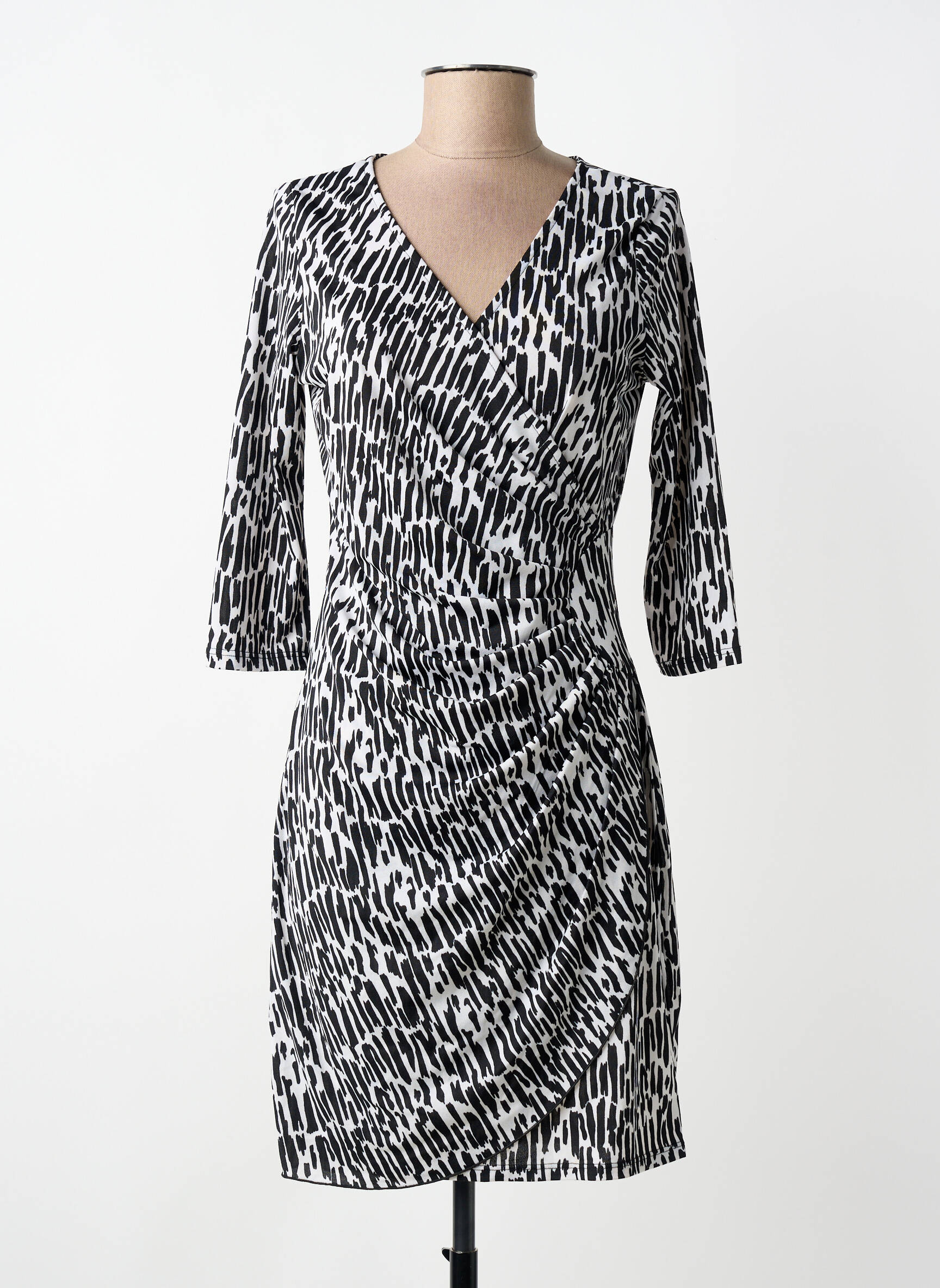 Craquez pour cette robe mi-longue de la marque Morgan, une pièce tendance à prix tout doux idéale pour renouveler votre garde-robe sans vous ruiner. Son imprimé graphique noir et blanc apporte une touche moderne, tandis que la coupe portefeuille avec décolleté en V sublime la silhouette. Les manches trois-quarts et le drapé élégant au niveau de la taille en font un choix parfait pour une allure chic au quotidien ou en soirée, à saisir sans hésiter pour faire de vraies économies.