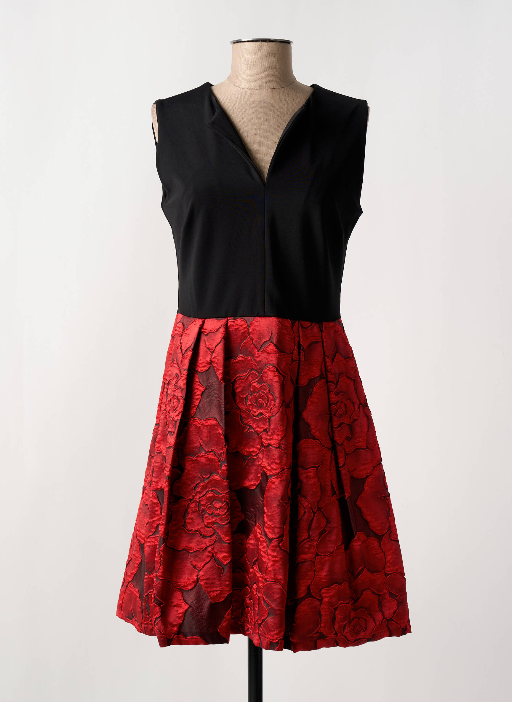 Profitez d’une occasion à saisir avec cette robe mi-longue NANA BAILA pour femme qui allie élégance et petit prix. Son haut noir sans manches au col subtilement fendu offre une silhouette chic et intemporelle, tandis que la jupe évasée rouge ornée d’un motif floral en relief ajoute une touche éclatante et sophistiquée à votre look. C’est le bon plan idéal pour une tenue féminine, originale et raffinée sans se ruiner, parfaite pour toutes vos occasions spéciales ou vos sorties festives.