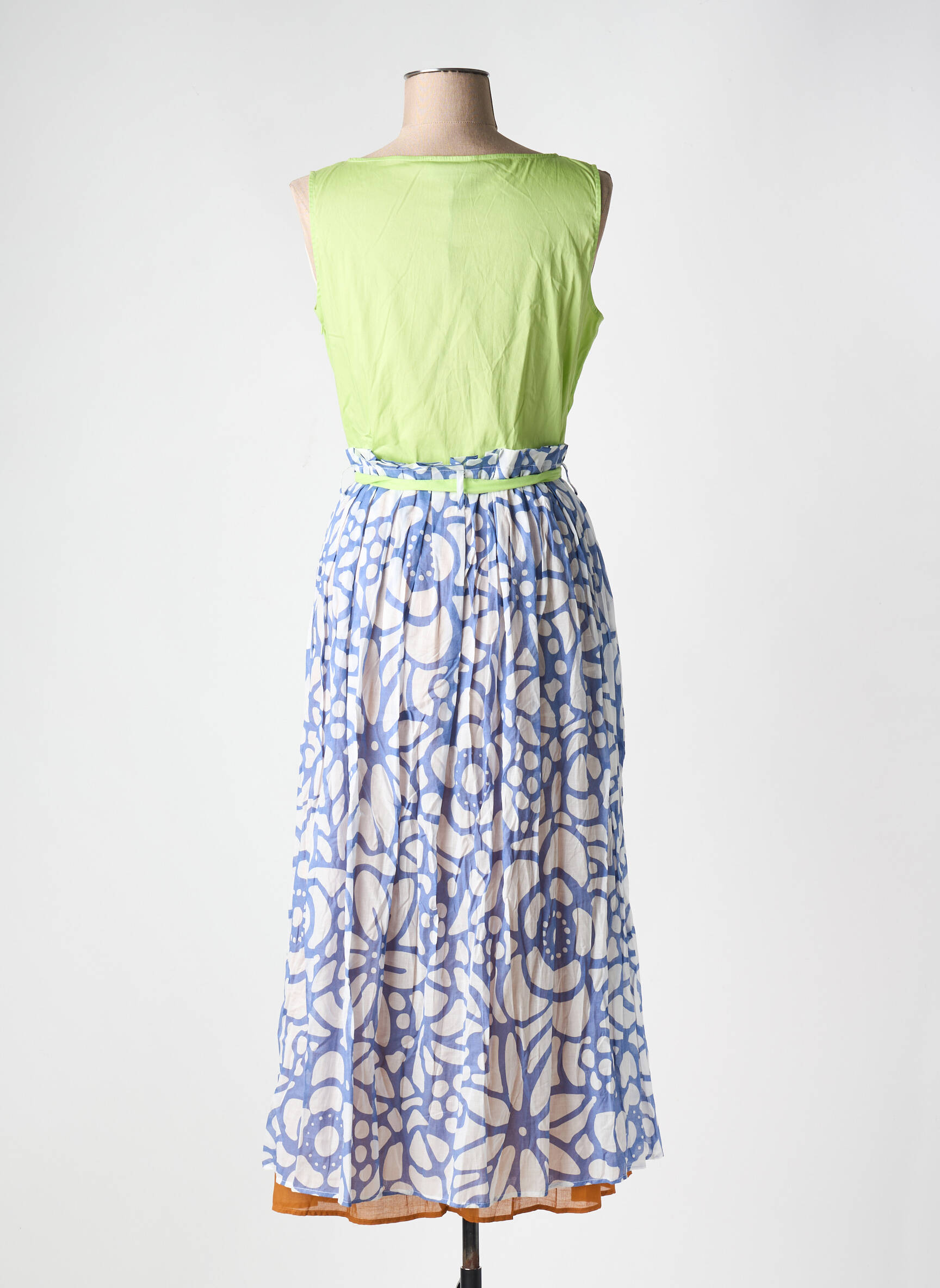 Une occasion à ne pas manquer avec cette robe mi-longue de la marque NIU, qui allie élégance et fraîcheur à prix doux. Son haut sans manches d’un vert acidulé se marie parfaitement à la jupe fluide à motifs floraux bleus, tandis que la ceinture contrastée ornée de pampilles apporte une touche de fantaisie, idéale pour sublimer votre silhouette sans vous ruiner.
