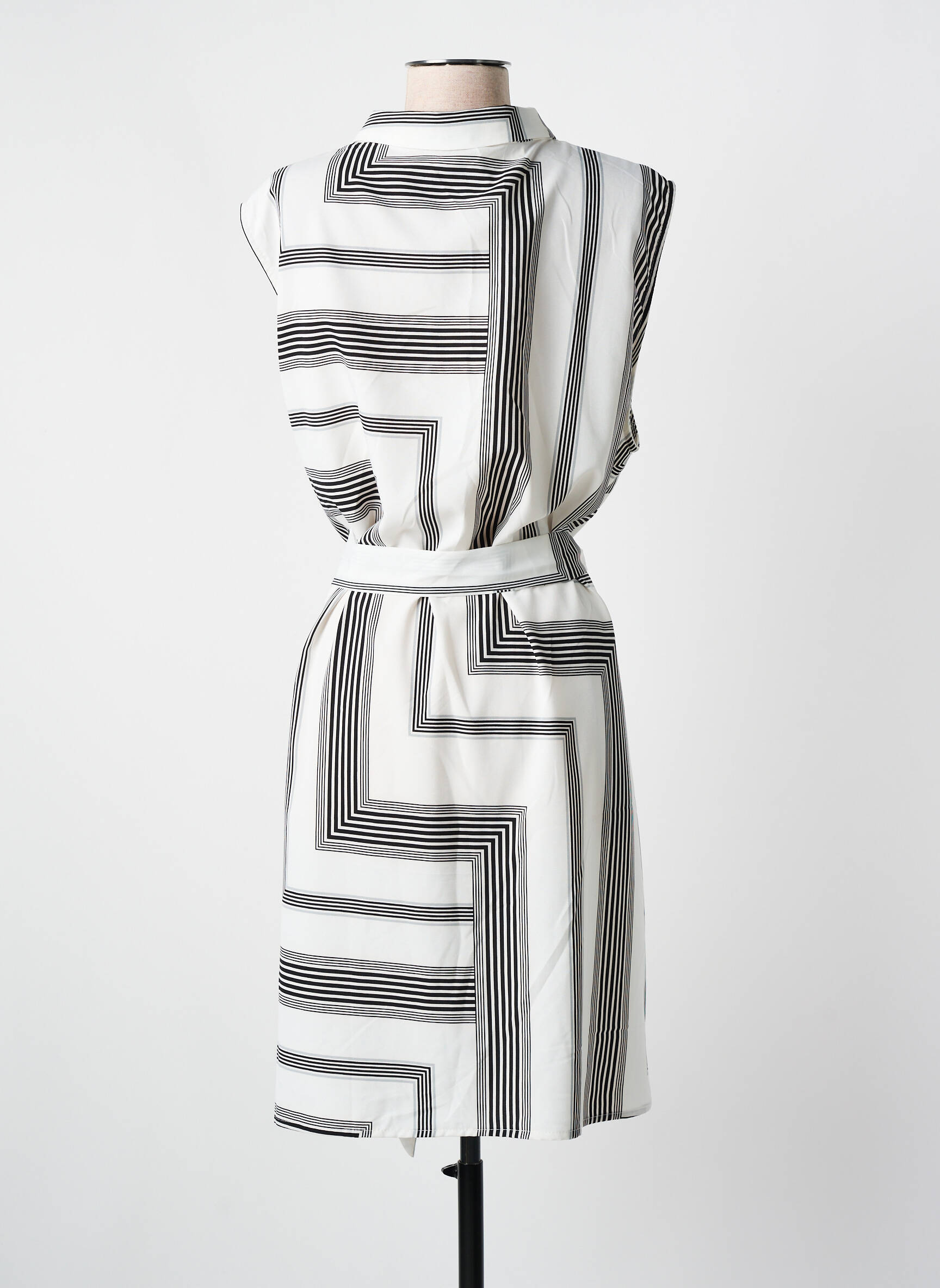 Profitez d’une belle affaire mode avec cette robe mi-longue signée NOUGAT à petit prix, parfaite pour celles qui aiment les pièces originales sans se ruiner. Son imprimé graphique noir et blanc lui donne un style moderne et chic, tandis que sa ceinture ton sur ton à nouer permet d’ajuster la taille pour une silhouette féminine et élégante. Son col chemise et son boutonnage discret apportent une touche sophistiquée, idéale aussi bien pour le bureau que pour une sortie en ville.