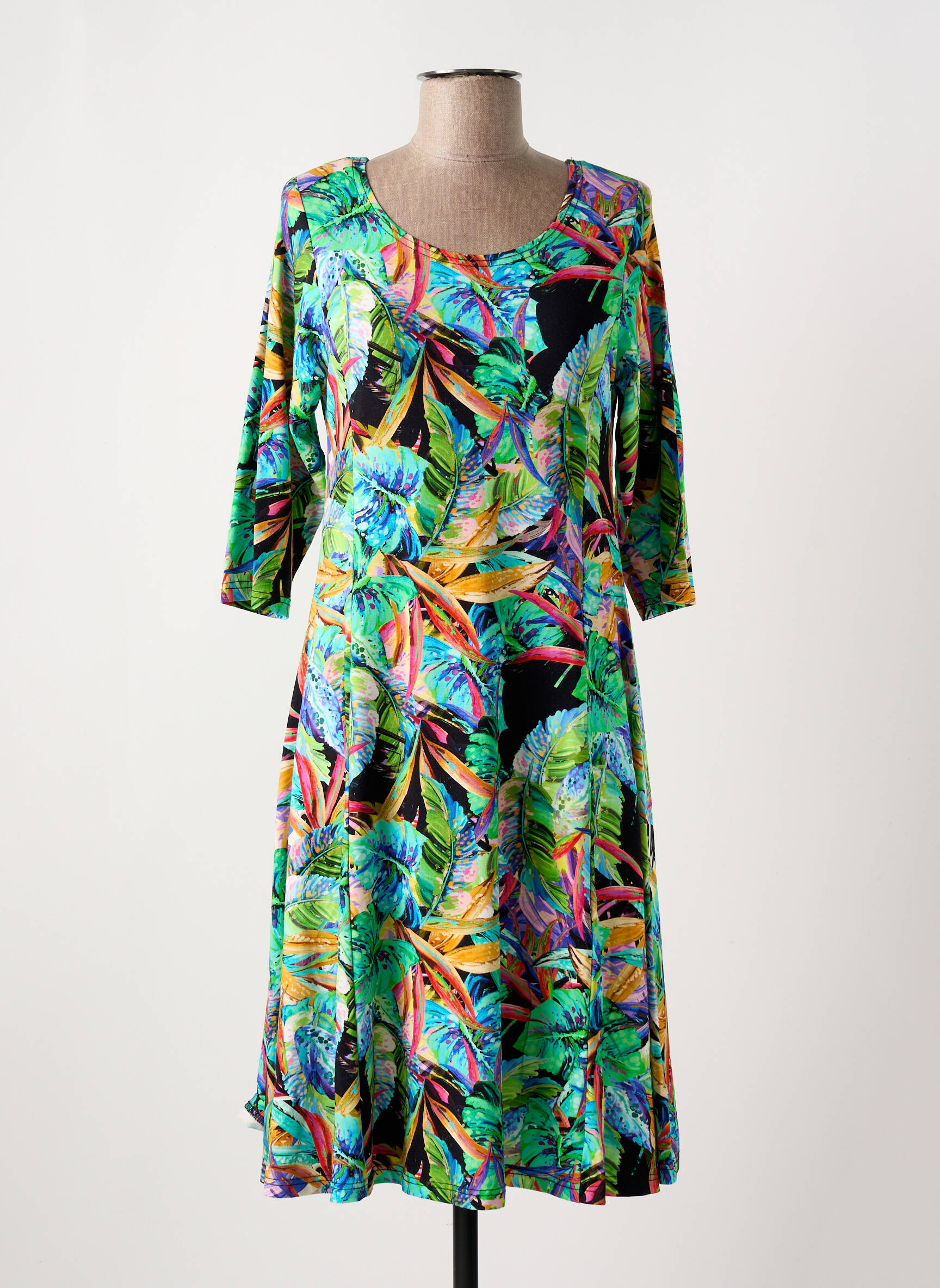Craquez pour cette robe mi-longue signée OLIVER JUNG à prix mini, un vrai bon plan pour apporter de la couleur à votre dressing sans vous ruiner. Son imprimé tropical aux teintes éclatantes et ses manches trois-quarts offrent un look frais et dynamique parfait pour la belle saison, tout en assurant un confort optimal au quotidien. Profitez d’un style original à petit prix et faites des économies sur une pièce forte qui ne passera pas inaperçue.