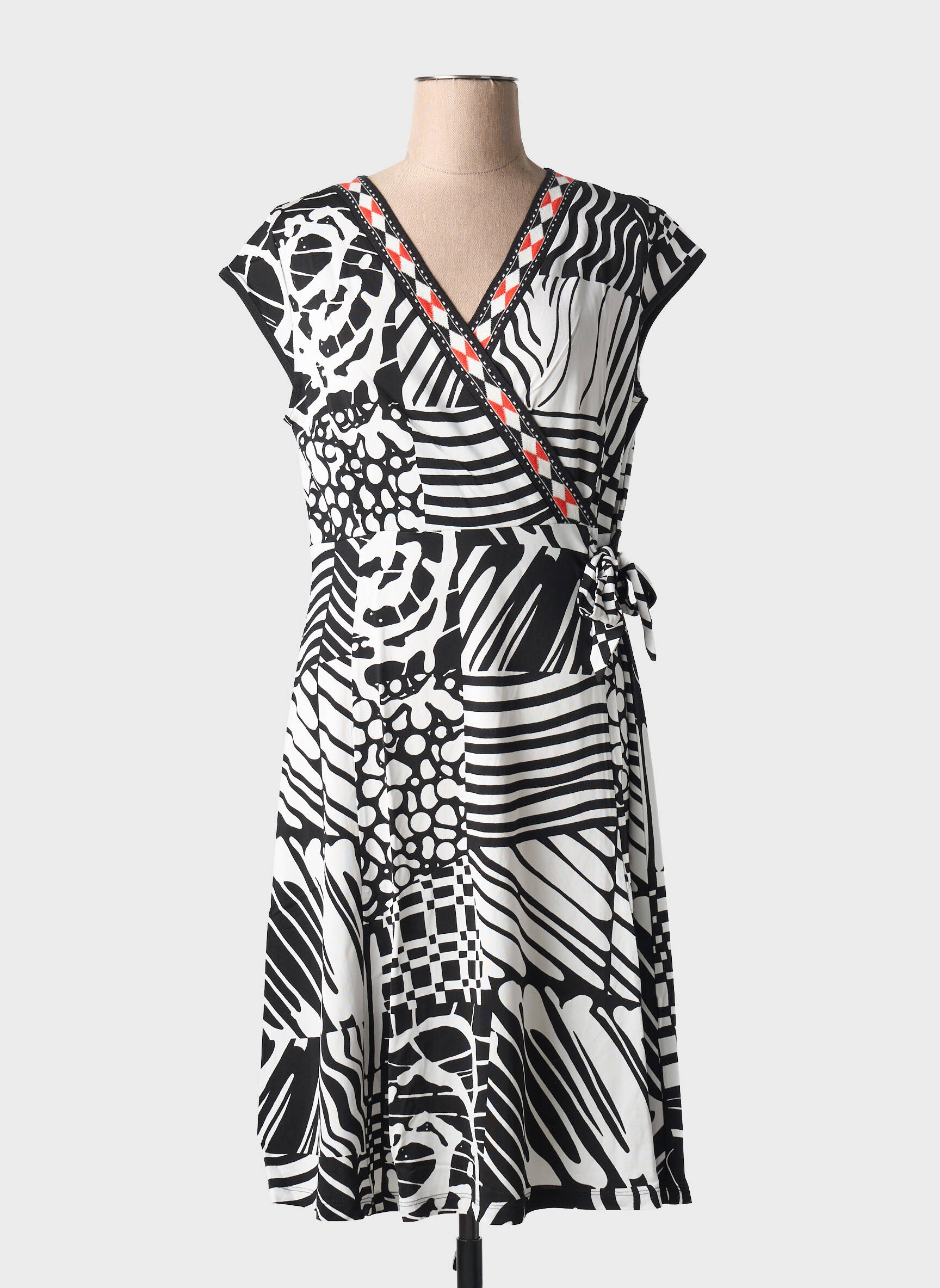 Profitez d’un vrai bon plan avec cette robe mi-longue OLIVIER PHILIPS pour femme, proposée à prix mini pour une allure stylée sans se ruiner. Son imprimé graphique noir et blanc apporte une touche d’originalité tendance, tandis que le décolleté cache-cœur souligné de détails rouges ainsi que la coupe cintrée avec ceinture à nouer dessinent une silhouette féminine et élégante. Idéale pour renouveler votre garde-robe sans compromis, cette robe est parfaite pour toutes les occasions, au bureau comme en sortie, tout en maîtrisant votre budget.