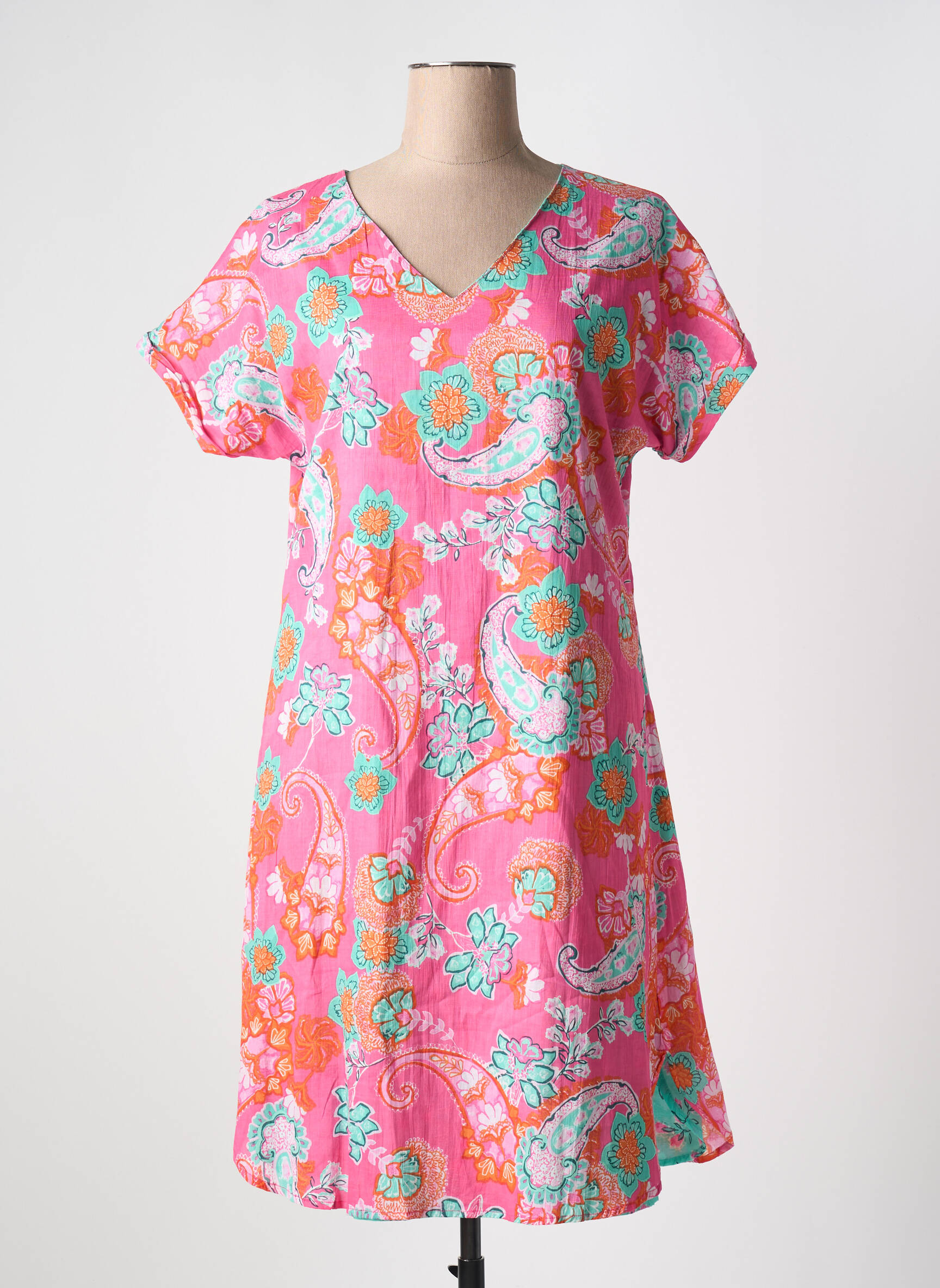 Craquez pour cette robe mi-longue de la marque ORIENTIQUE NATURALLY à prix tout doux, parfaite pour ajouter une touche de fraîcheur à votre garde-robe sans vous ruiner. Son tissu fluide bleu turquoise, rehaussé d’un délicat motif floral rose et vert, apporte une note légère et pleine de gaieté pour la belle saison, tandis que sa coupe droite avec encolure en V et manches courtes offre un porté confortable et féminin idéal au quotidien. C’est le bon plan à ne pas manquer pour celles qui cherchent une pièce tendance et abordable.