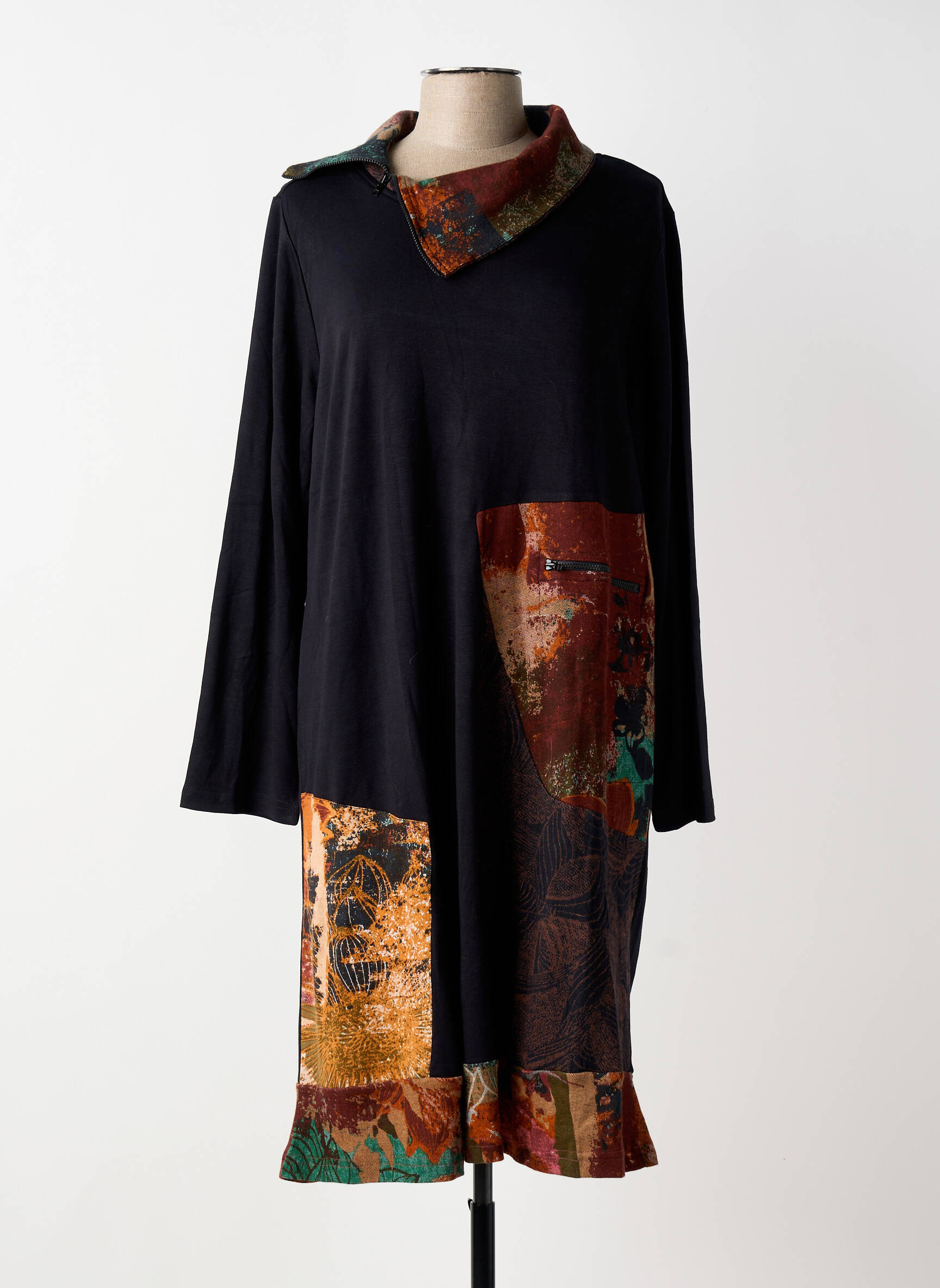 Robe Mi-longue Orientique Naturally Noir Manches Longues