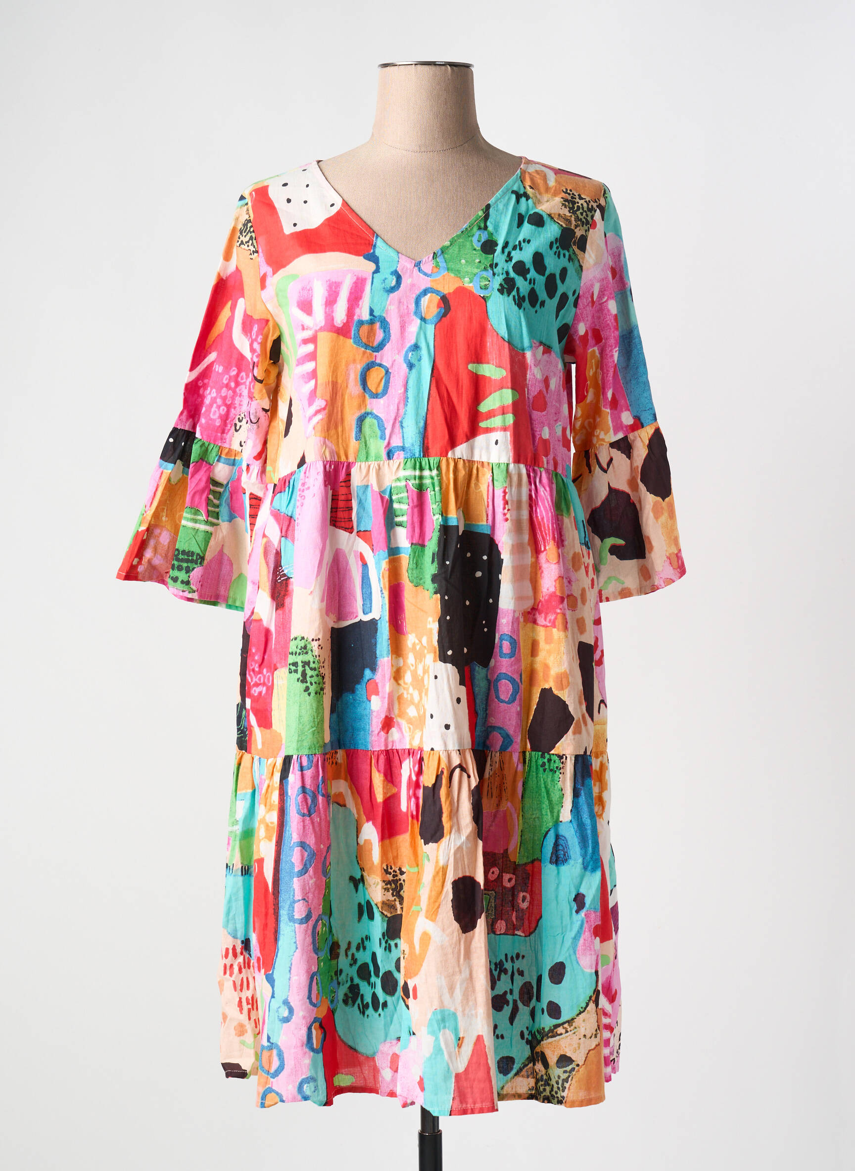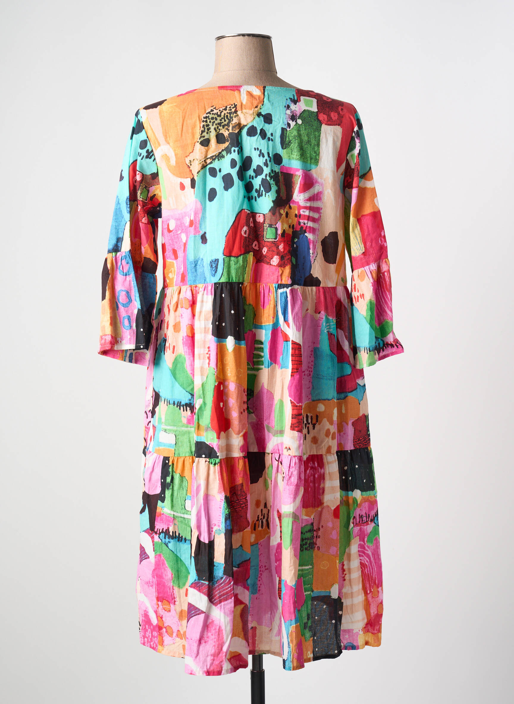Voici la robe mi-longue ORIENTIQUE NATURALLY, une véritable aubaine pour toutes celles qui cherchent à ajouter une touche de fraîcheur et de couleur à leur garde-robe sans se ruiner. Son imprimé patchwork multicolore, à la fois artistique et dynamique, illumine le quotidien et permet d’oser un style unique à petit prix. Sa coupe ample avec des manches légèrement évasées offre un confort maximal tout en restant féminine et moderne, idéale pour profiter d’un look tendance à prix doux.