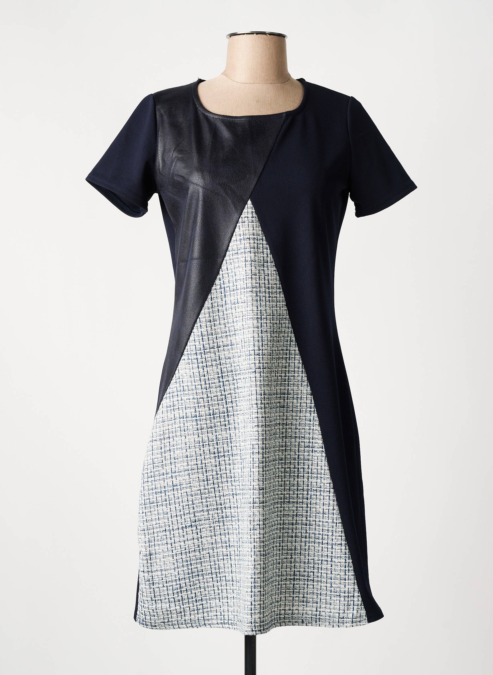 Pour toutes celles qui cherchent une pièce élégante à petit prix, cette robe mi-longue ROMEO POUR JULIETTE est une véritable opportunité à ne pas manquer. Elle séduit par son jeu de matières tendance, associant un haut travaillé façon simili cuir à un panneau central effet tweed contrastant, qui affine la silhouette et apporte une touche graphique moderne. Idéale pour renouveler votre garde-robe sans vous ruiner, elle allie féminité et style contemporain pour un look citadin irrésistible à prix malin.