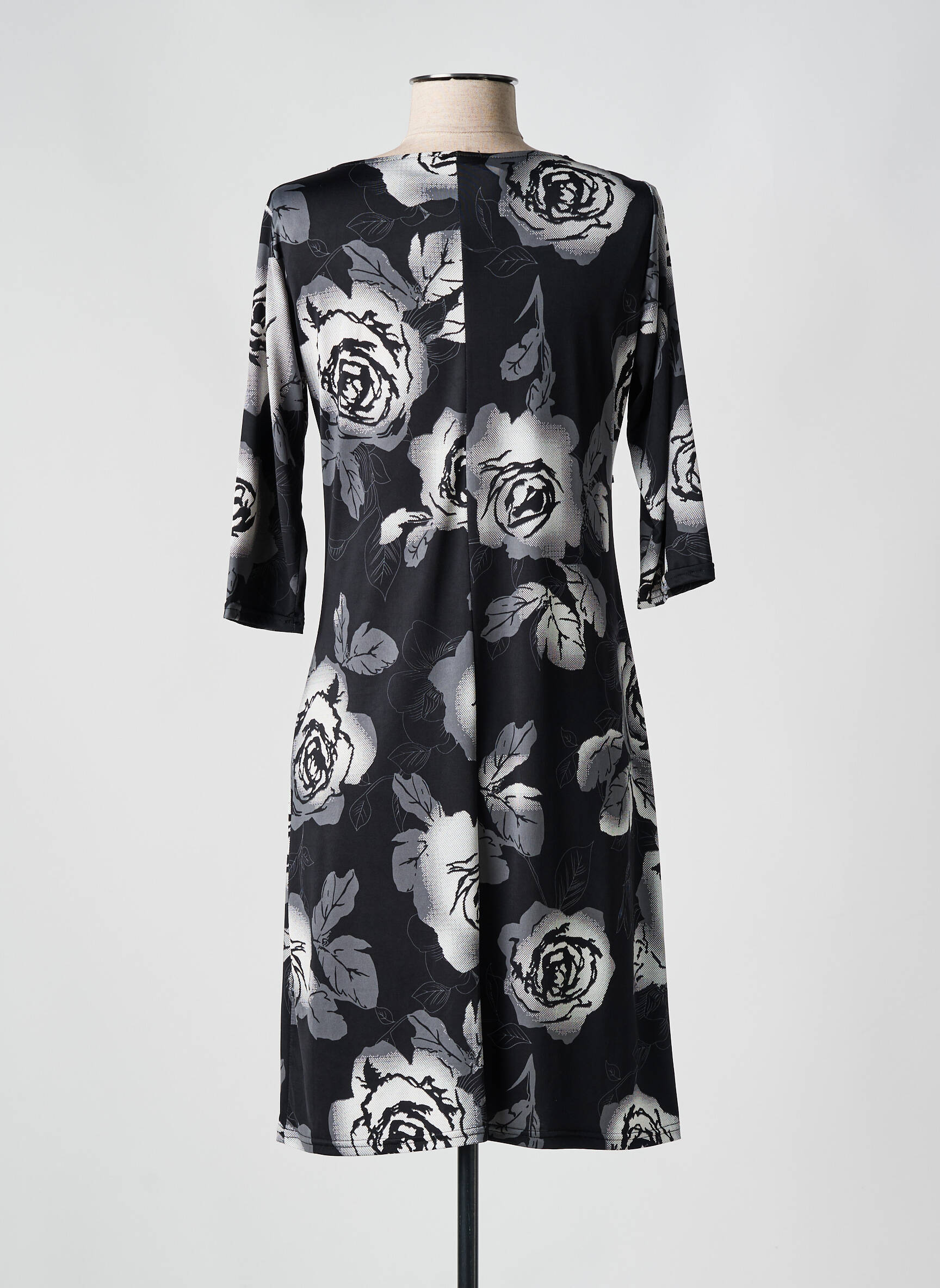 Imaginez une robe qui capte l'élégance en un simple regard : cette robe mi-longue de ROMEO POUR JULIETTE dégage une aura sophistiquée grâce à son imprimé floral graphique en nuances de noir, gris et blanc qui habille délicatement une silhouette droite dotée de manches trois-quarts et d’un col rond subtilement classique.