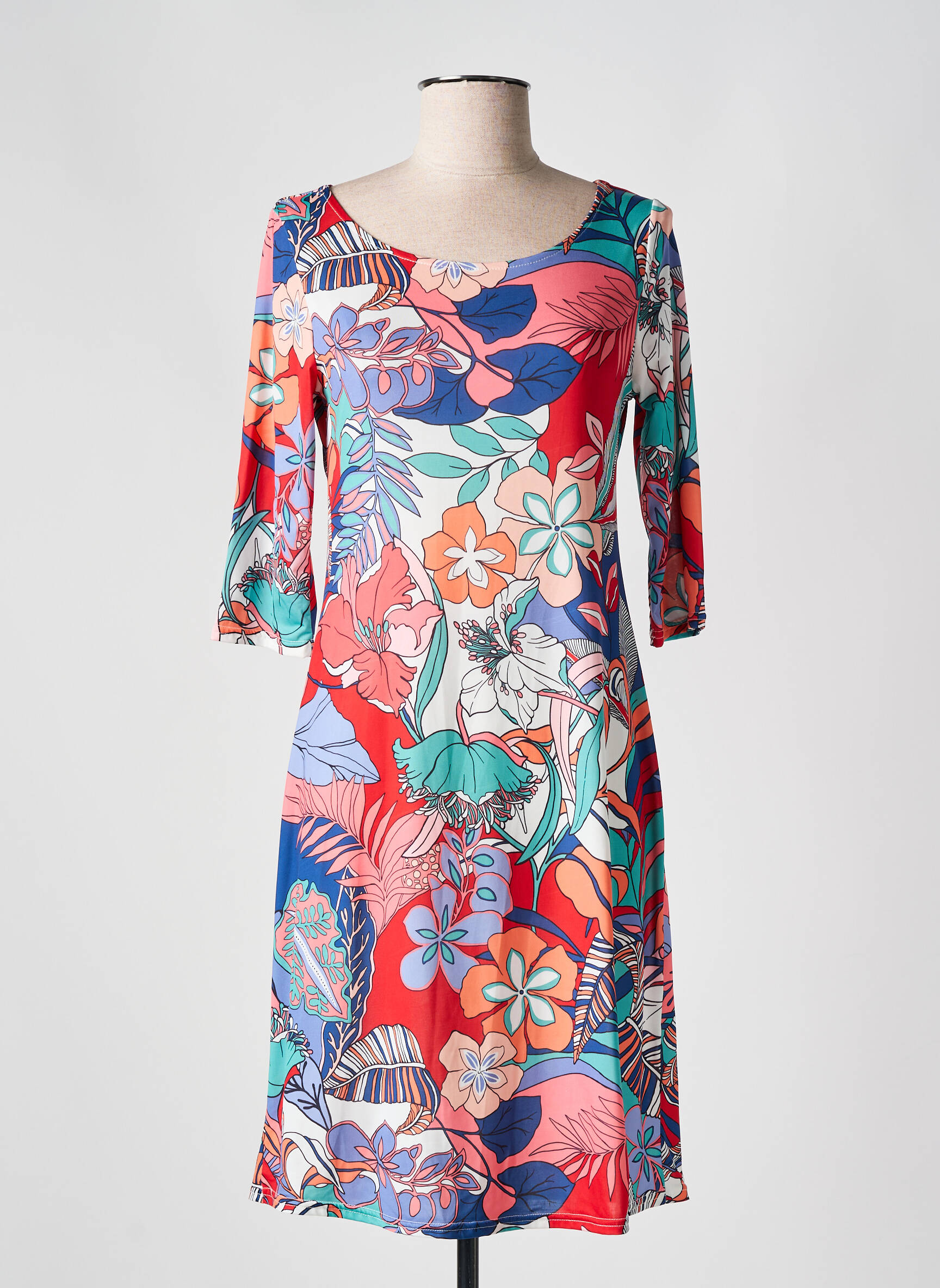 Imaginez une explosion de couleurs et de motifs floraux qui transformera votre silhouette en une œuvre d’art vivante avec cette robe mi-longue signée ROMEO POUR JULIETTE, où un col en V délicatement arrondi et des manches trois-quarts viennent sublimer un jersey fluide paré d’un imprimé audacieux mêlant rouges vibrants, bleus profonds et touches de vert et de rose dans un esprit à la fois délicieusement rétro et résolument moderne.