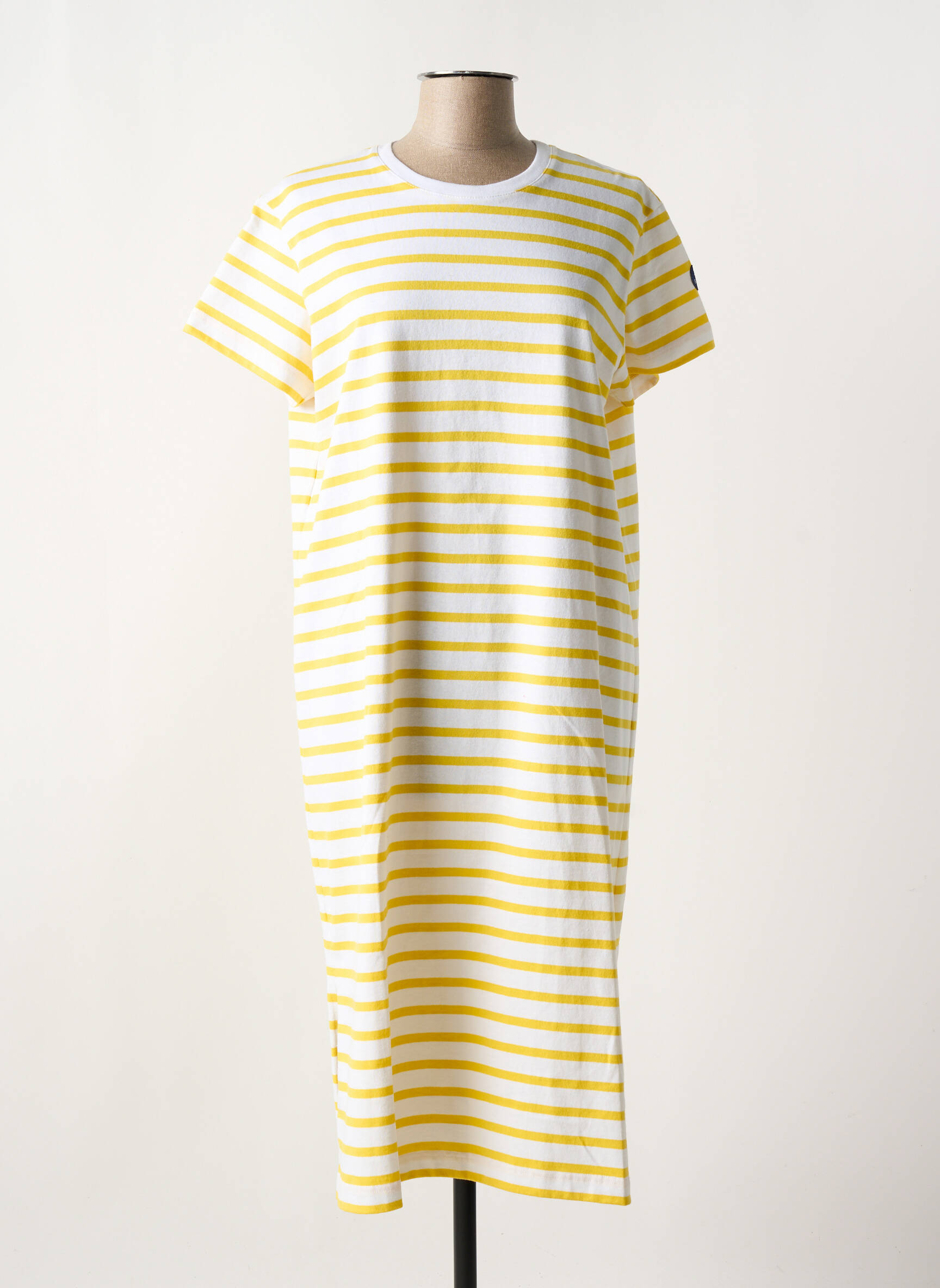 Craquez pour cette robe mi-longue de la marque ROYAL MER à petit prix, parfaite pour ajouter une touche de fraîcheur à votre dressing sans vous ruiner. Son motif à rayures jaunes et blanches illumine instantanément la silhouette, tandis que sa coupe décontractée assure un confort optimal au quotidien. Idéale pour les journées ensoleillées ou une escapade à la mer, elle vous permet de profiter d’un look tendance à prix tout doux.