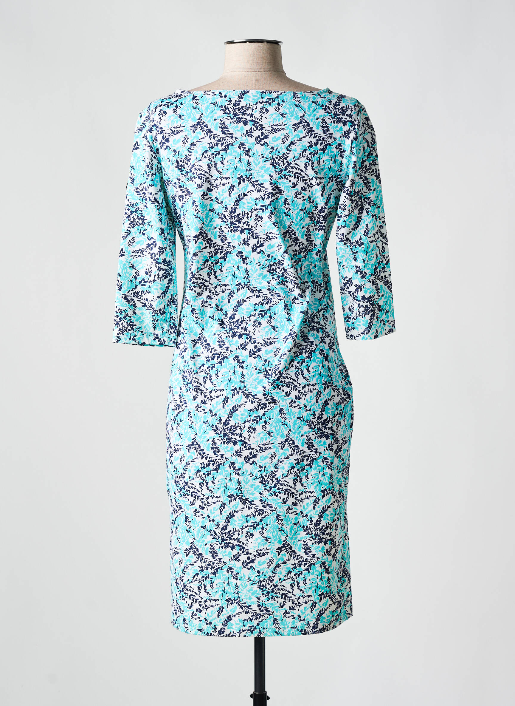Craquez pour cette robe mi-longue SAINT JACQUES, un vrai bon plan pour renouveler votre garde-robe sans vous ruiner. Son imprimé graphique dans des tons turquoise et blanc apporte une touche fraîche et moderne, tandis que la coupe droite avec manches trois-quarts assure une allure féminine et facile à porter au quotidien comme pour les occasions spéciales, un incontournable chic à petit prix.