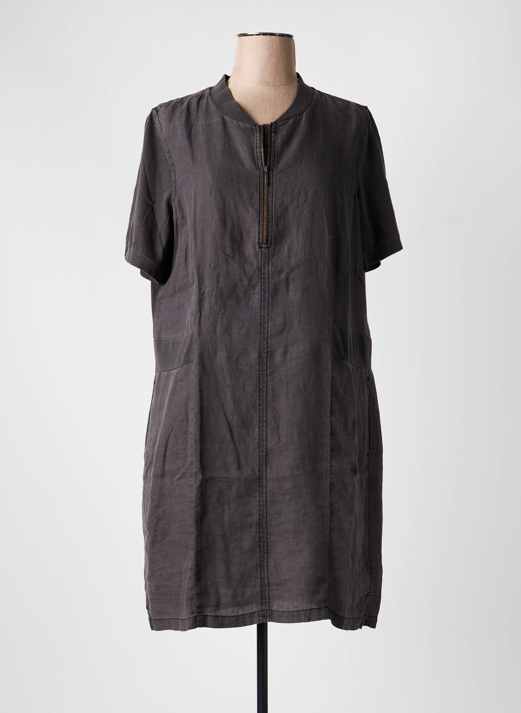 Robe Mi-longue Sandwich Gris Manches Courtes