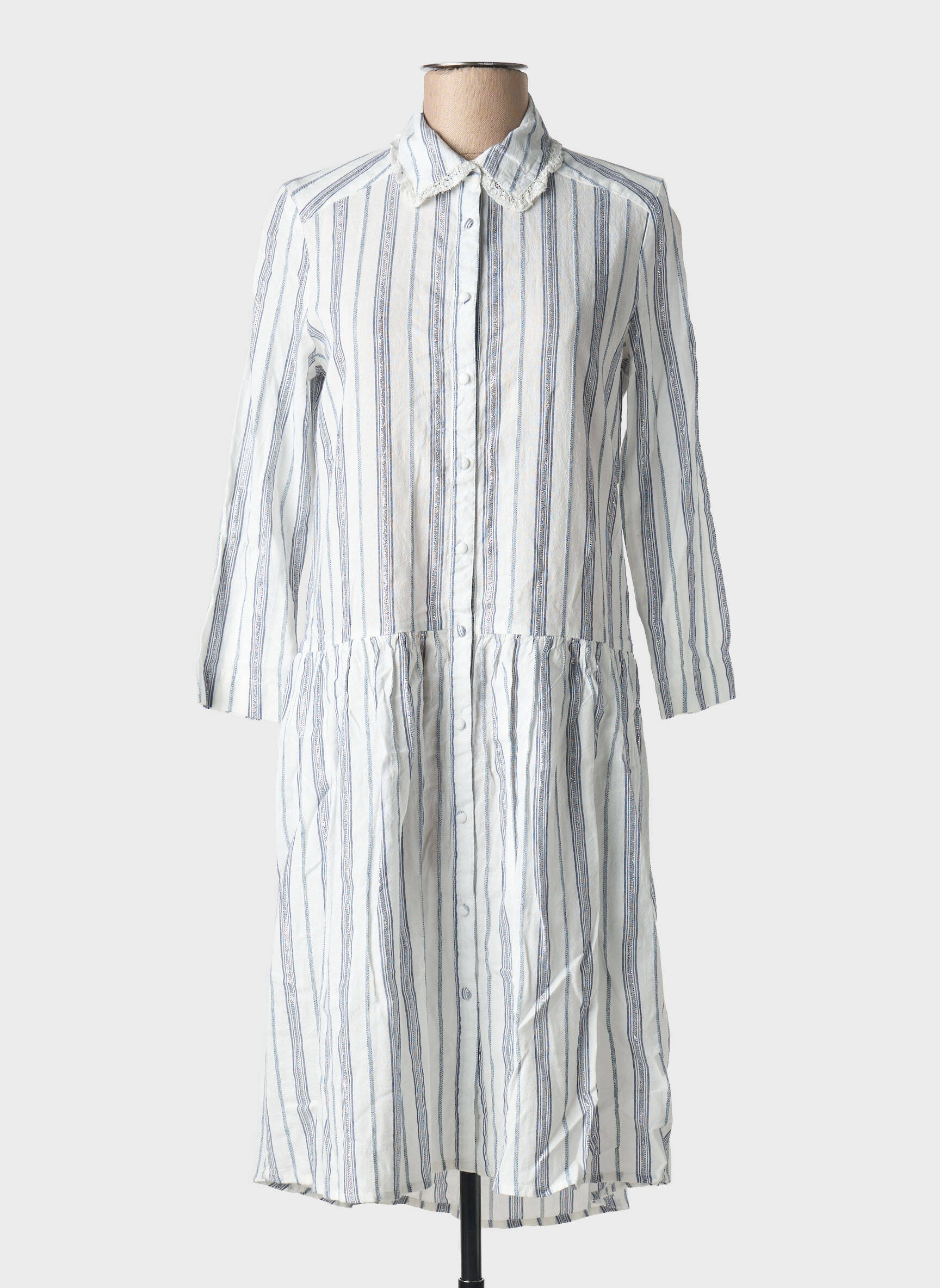 Craquez pour cette robe mi-longue SCHOOL RAG à prix mini, un vrai bon plan pour renouveler votre garde-robe sans vous ruiner. Sa coupe élégante et décontractée met en valeur une silhouette féminine, tandis que ses rayures verticales allongent la ligne avec légèreté. Le col chemise et la rangée de boutons apportent une touche de chic intemporel, parfait pour un look moderne et soigné du matin au soir. Profitez de cette pièce tendance à petit prix, idéale à porter en toutes occasions !