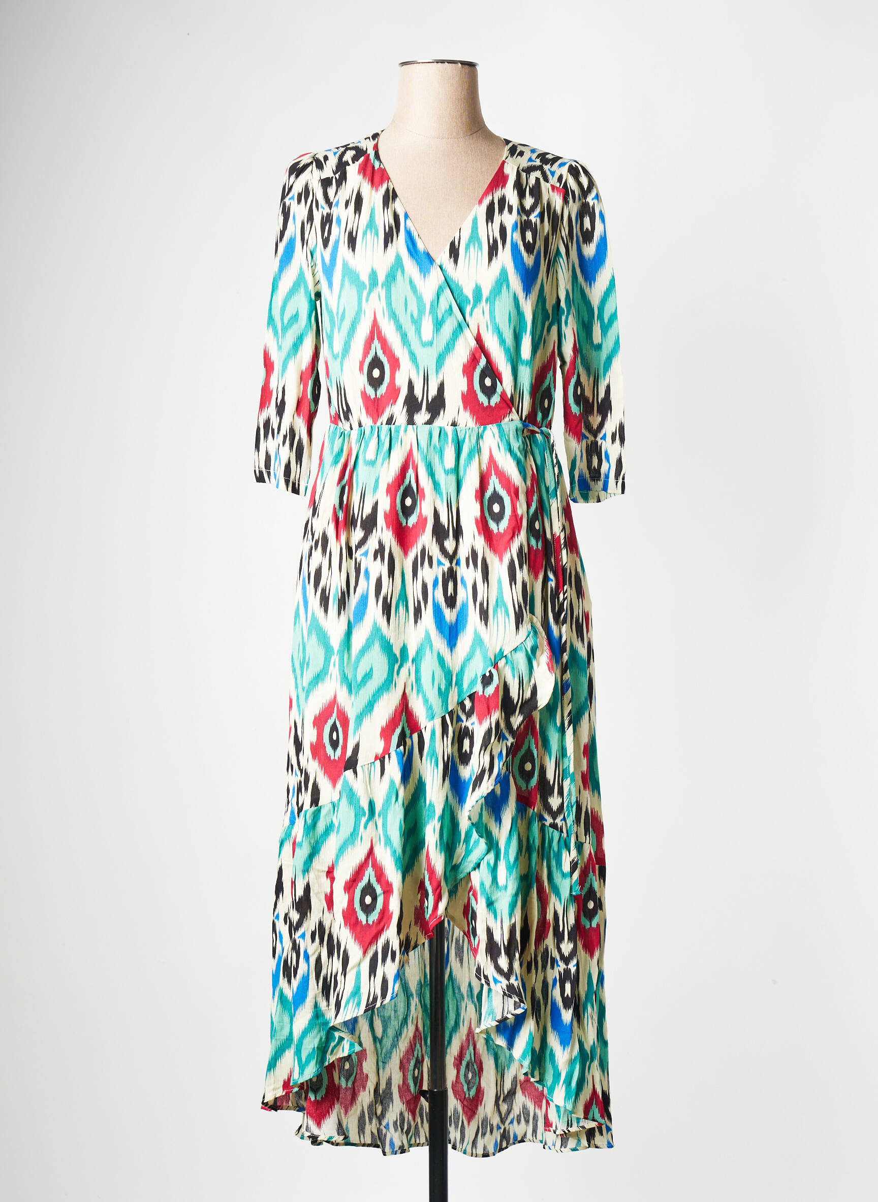 Profitez d’un superbe bon plan avec cette robe mi-longue See U Soon pour femme, idéale pour apporter une touche de fraîcheur et d’originalité à votre dressing sans vous ruiner. Son imprimé coloré aux motifs graphiques dynamise la silhouette, tandis que la coupe portefeuille flatte toutes les morphologies avec élégance. Les manches trois-quarts et la finition légèrement asymétrique offrent un look tendance et confortable, parfait pour toutes les occasions. Saisissez cette opportunité pour vous offrir une pièce stylée à prix doux parmi nos offres déstockage multi-marques.